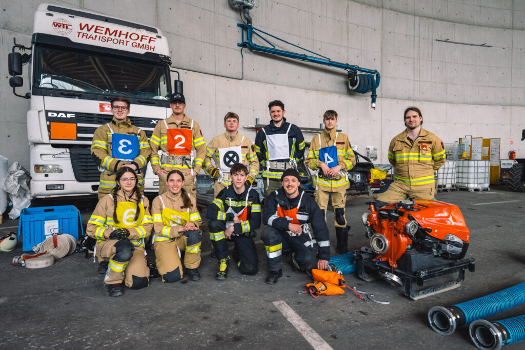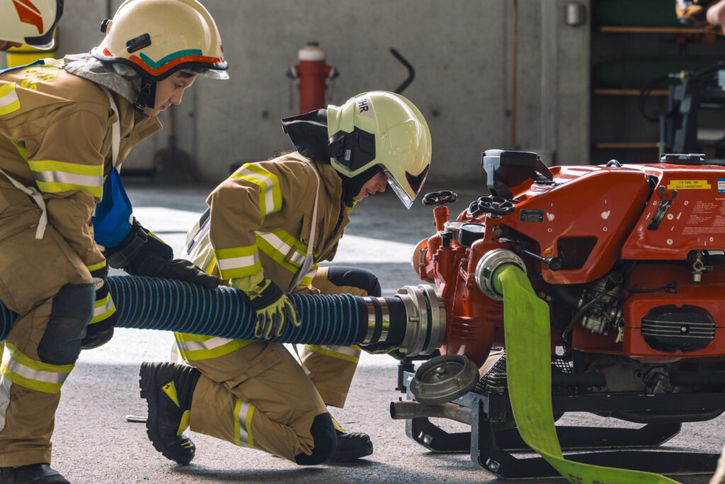 Unter der Leitung der Ausbilder standen „Die Saugleitung mit Gerätekunde“, „Absichern und Absperren“, „Arbeiten mit Steck- und Schiebeleitern“ sowie „Die Zubringerleitung“ auf dem Stundenplan.