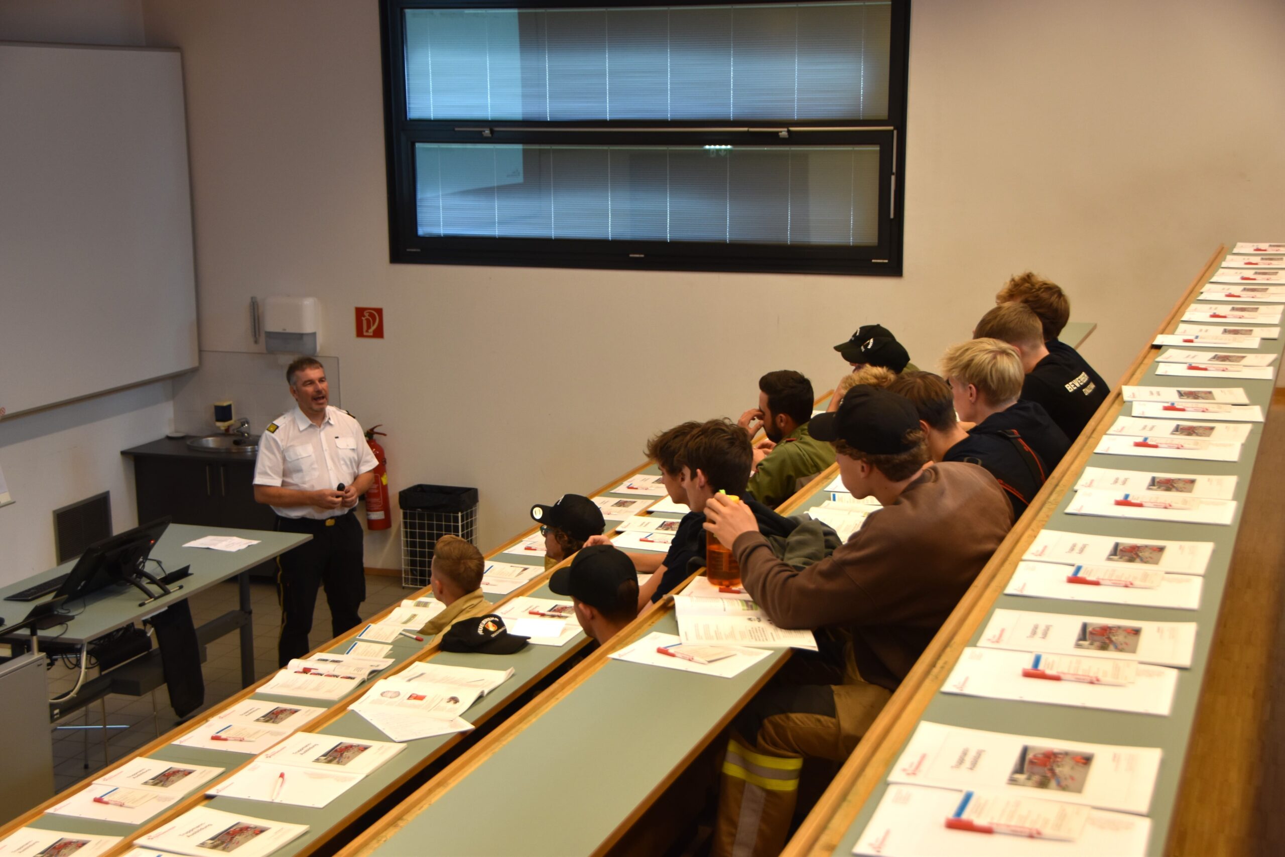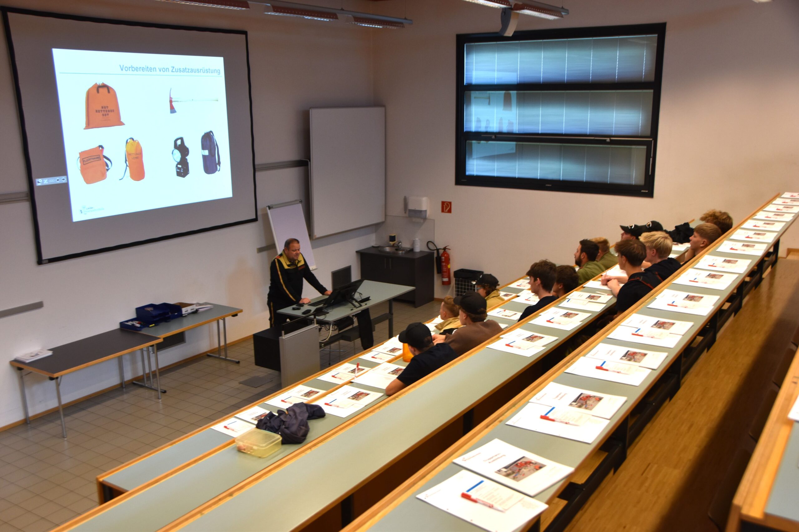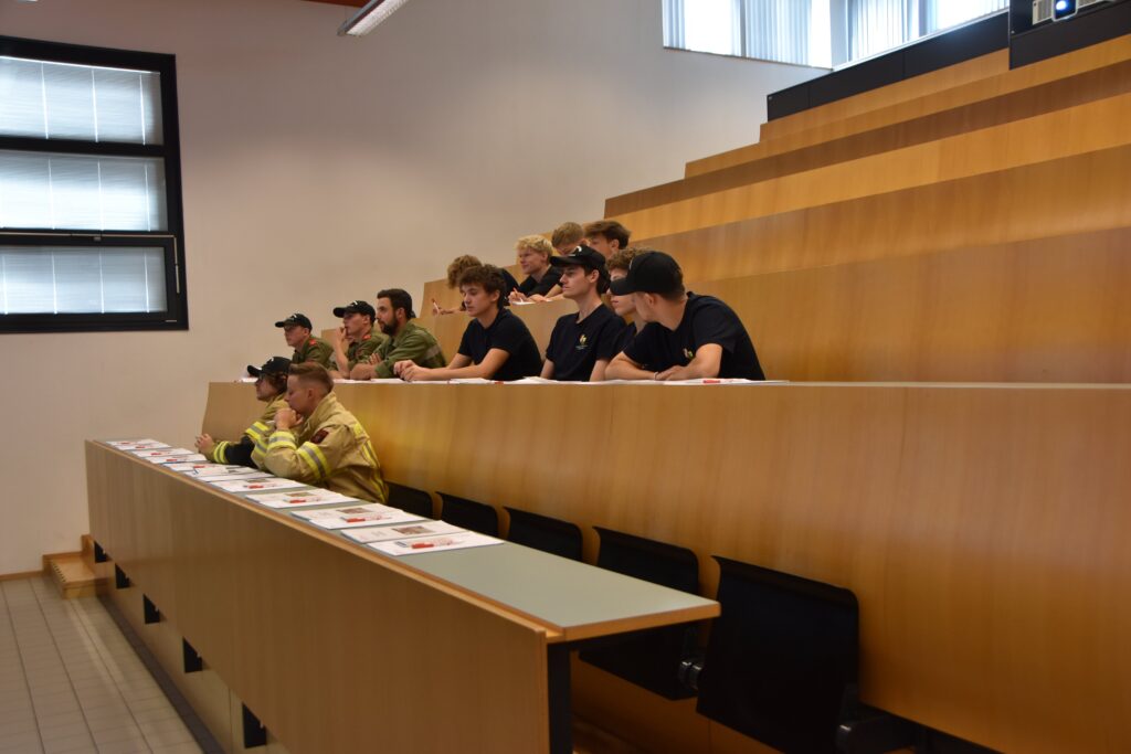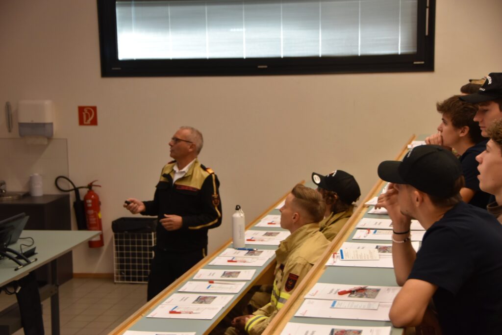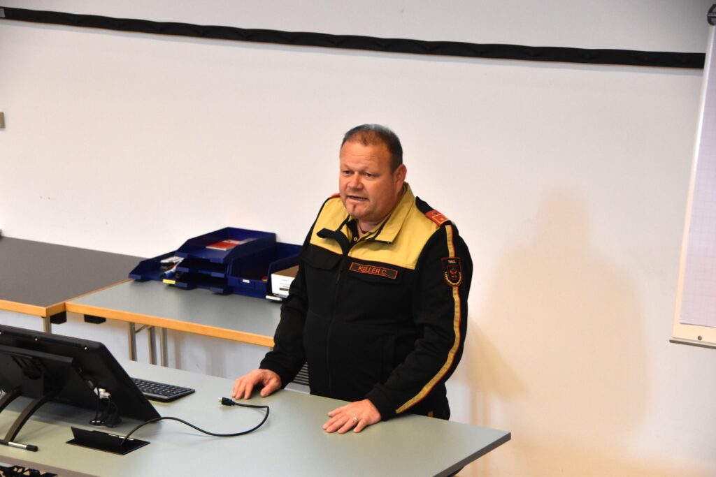 Da die Grundausbildung mittlerweile sowohl im Bezirk als auch auf Landesebene in hybrider Form durchgeführt werden kann, fanden sich am Freitag „nur“ 14 Kameradinnen und Kameraden in der Schule ein, um die theoretische Ausbildung zu absolvieren. Im Lehrsaal vermittelten unsere Ausbilder Grundlagen von der Gruppe im Löscheinsatz, über die Gefahren an der Einsatzstelle, Grundinformationen zum Thema Atemschutz und Unfallverhütungsmaßnahmen bis hin zum richtigen Umgang der Feuerwehrmitglieder in den sozialen Medien.