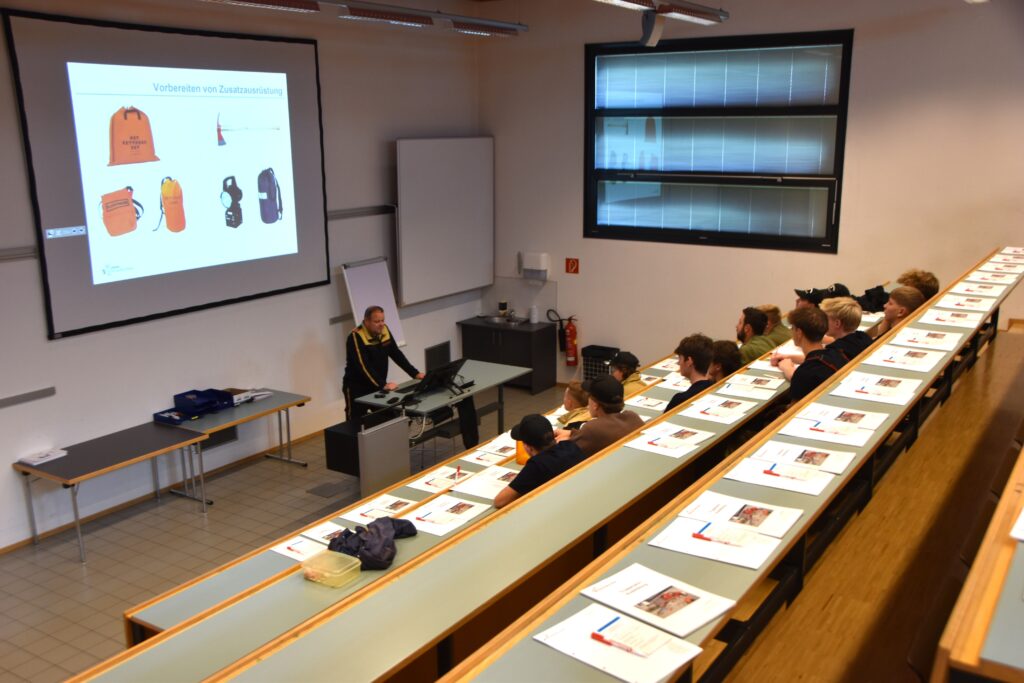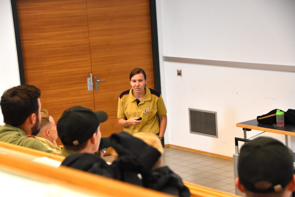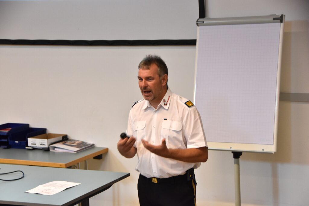Am Samstag wurde die Gruppe durch 67 weitere Teilnehmer:innen ergänzt, die die Theorie bereits online über die Lernplattform Moodle absolviert hatten. Bezirksfeuerwehrkommandant-Stellvertreter BR Martin Hellbert und Sachgebietsleiter Ausbildung ABI Karl Pajk teilten nach der Begrüßung die Gruppen für den Praxistag ein.