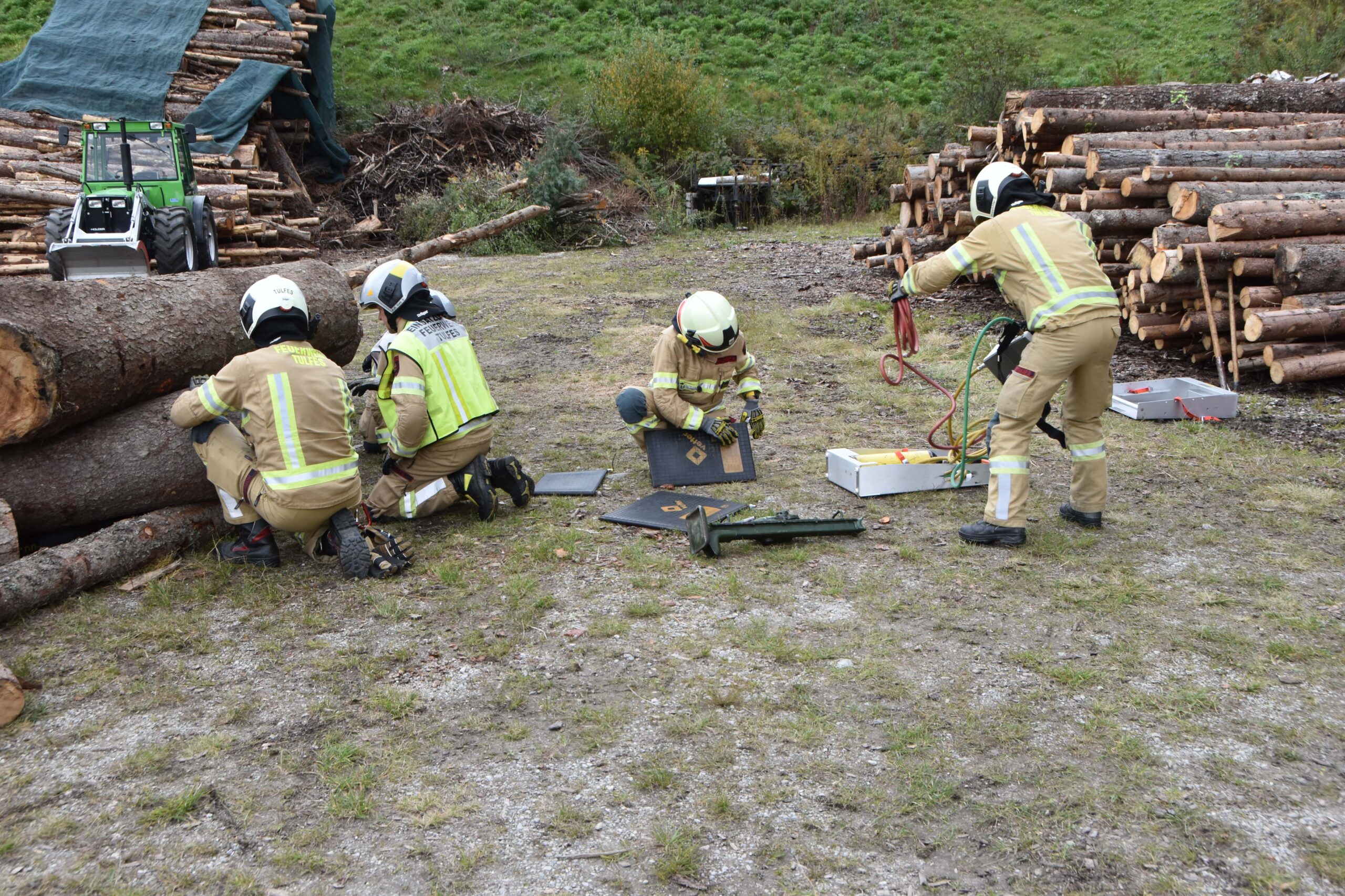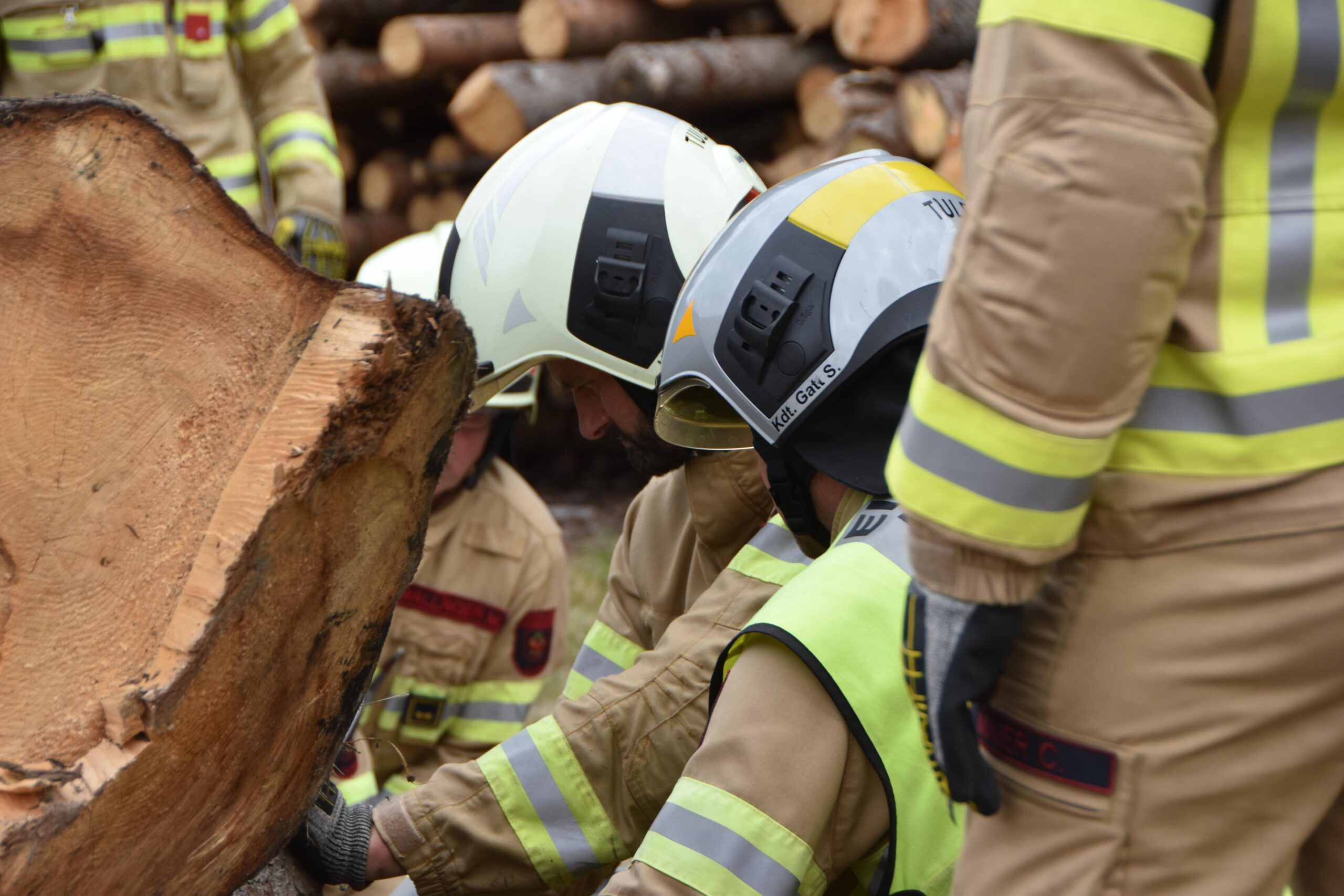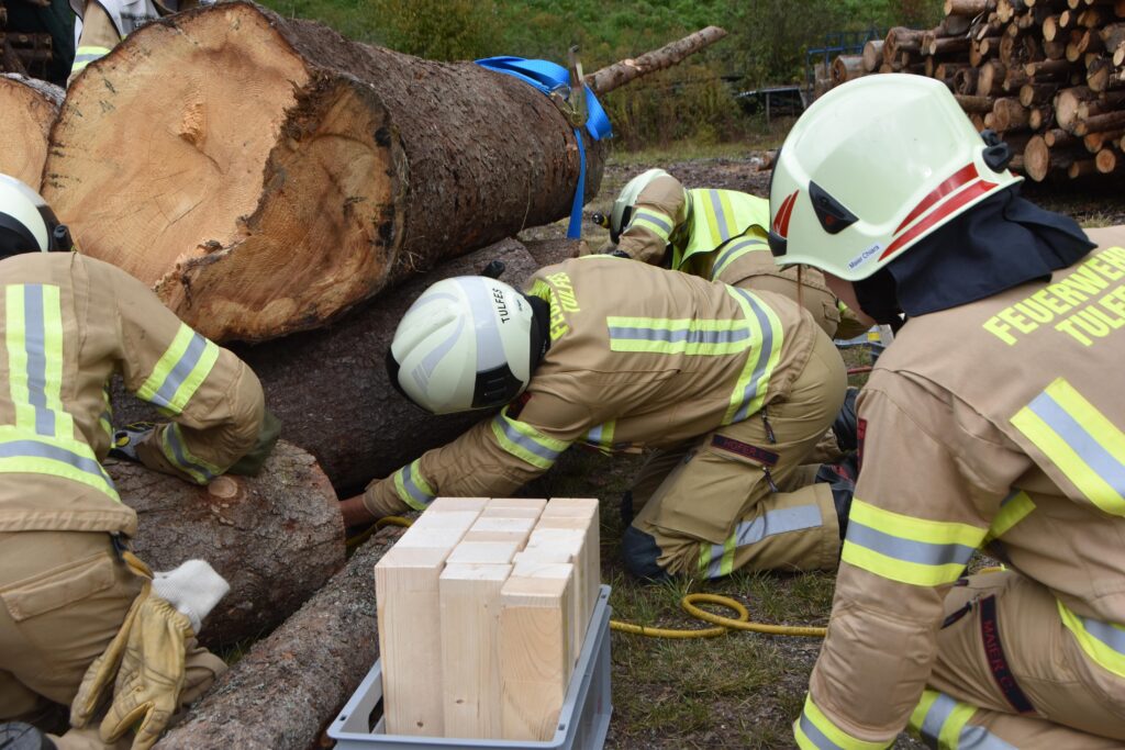 Im dritten Szenario wurde angenommen, dass ein Arbeiter bei Holzarbeiten von Baumstämmen überrollt und eingeklemmt wurde.