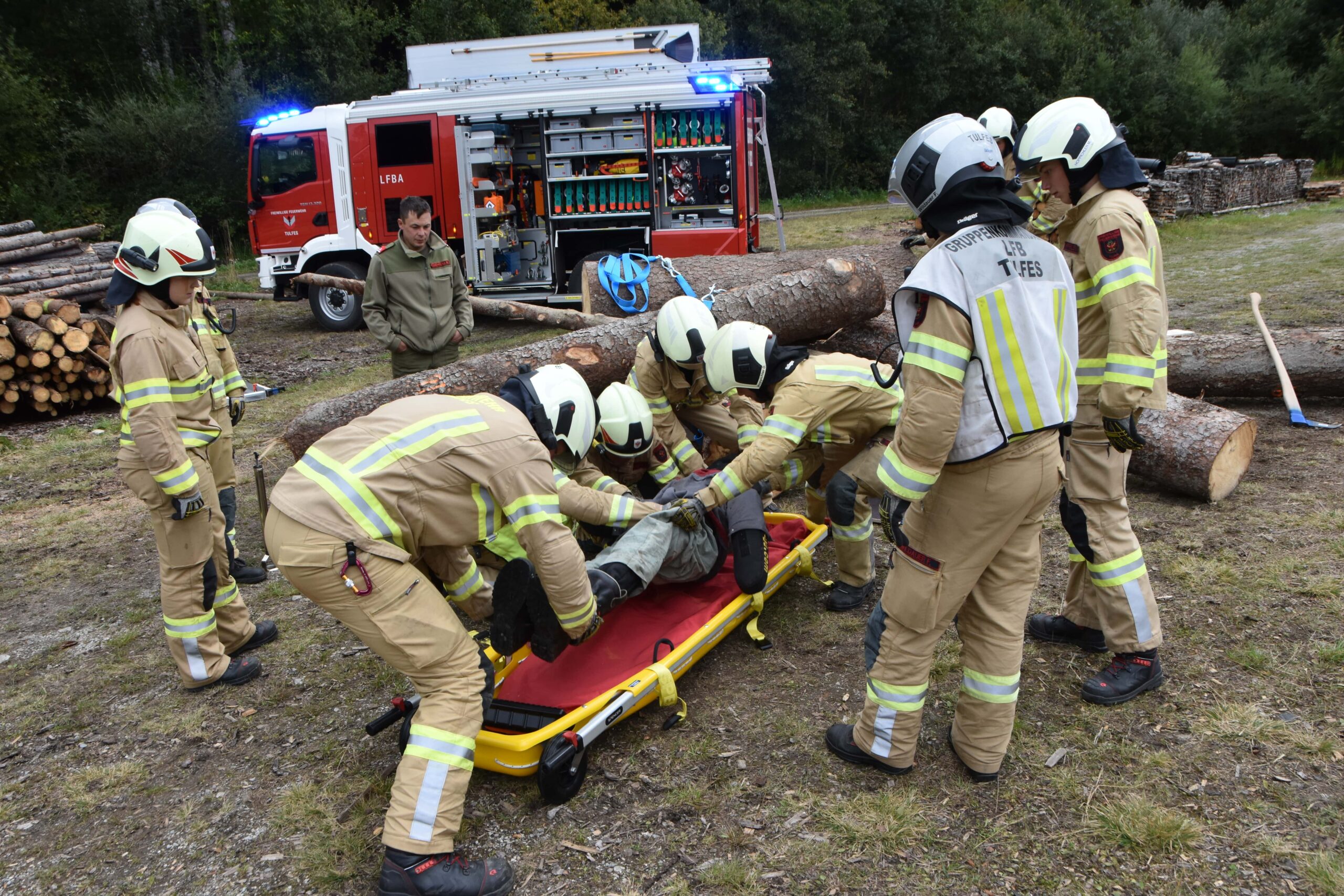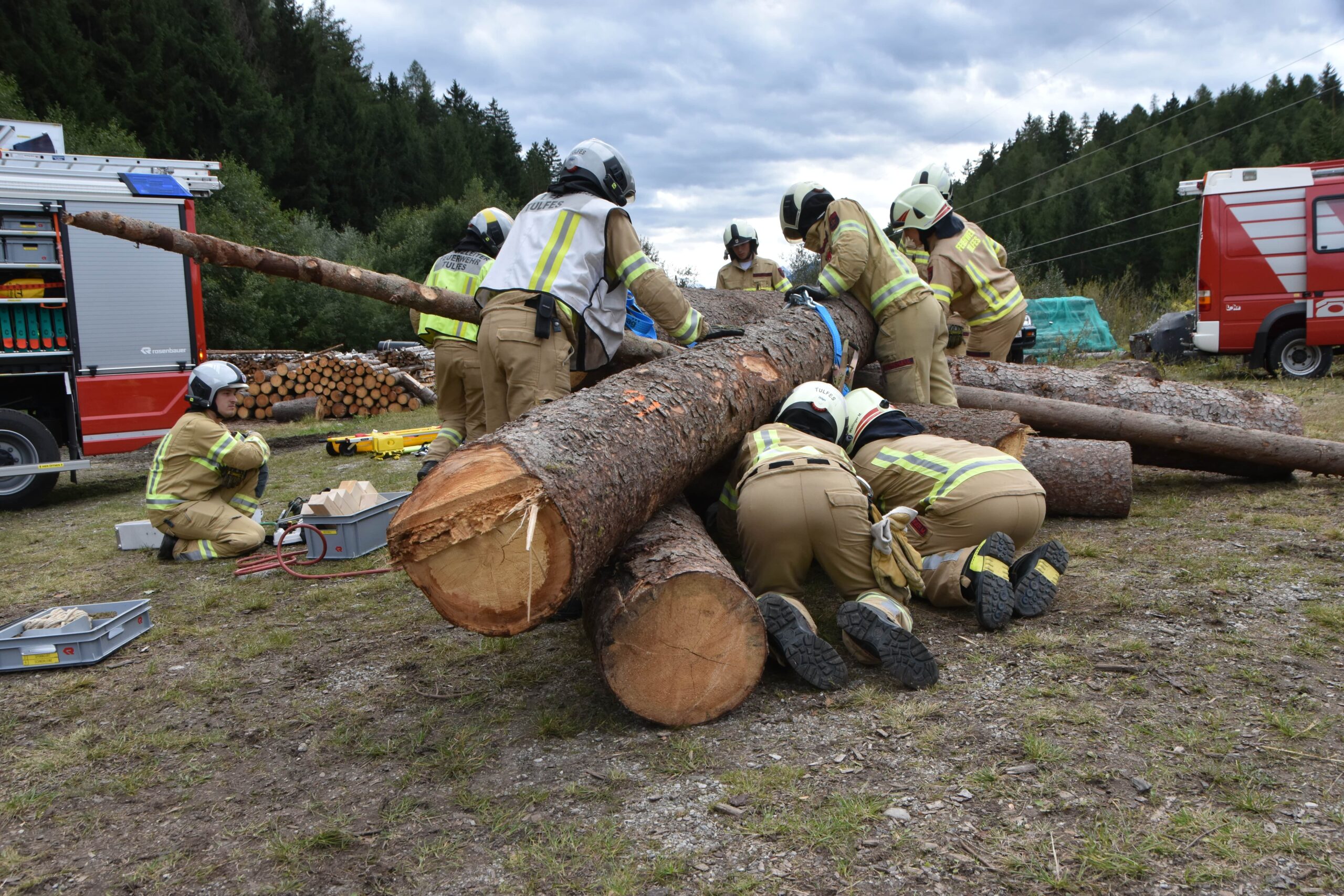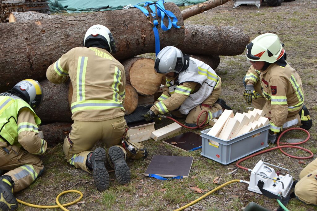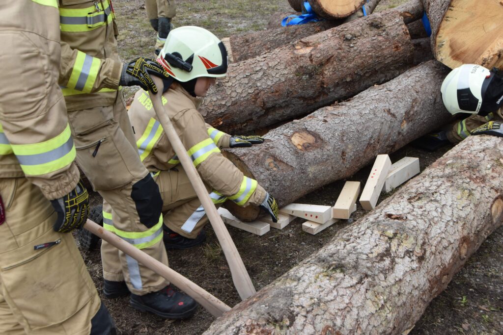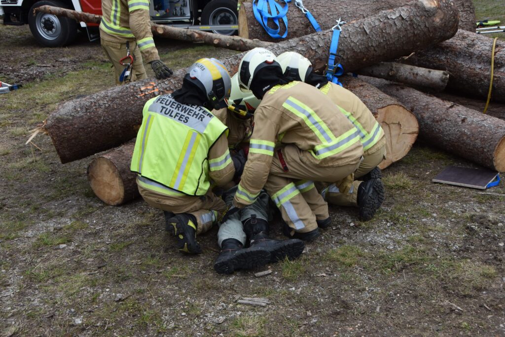 Die Aufgabe bestand darin, die verunfallte Person so vorsichtig und dennoch so rasch wie möglich von den Stämmen zu befreien.