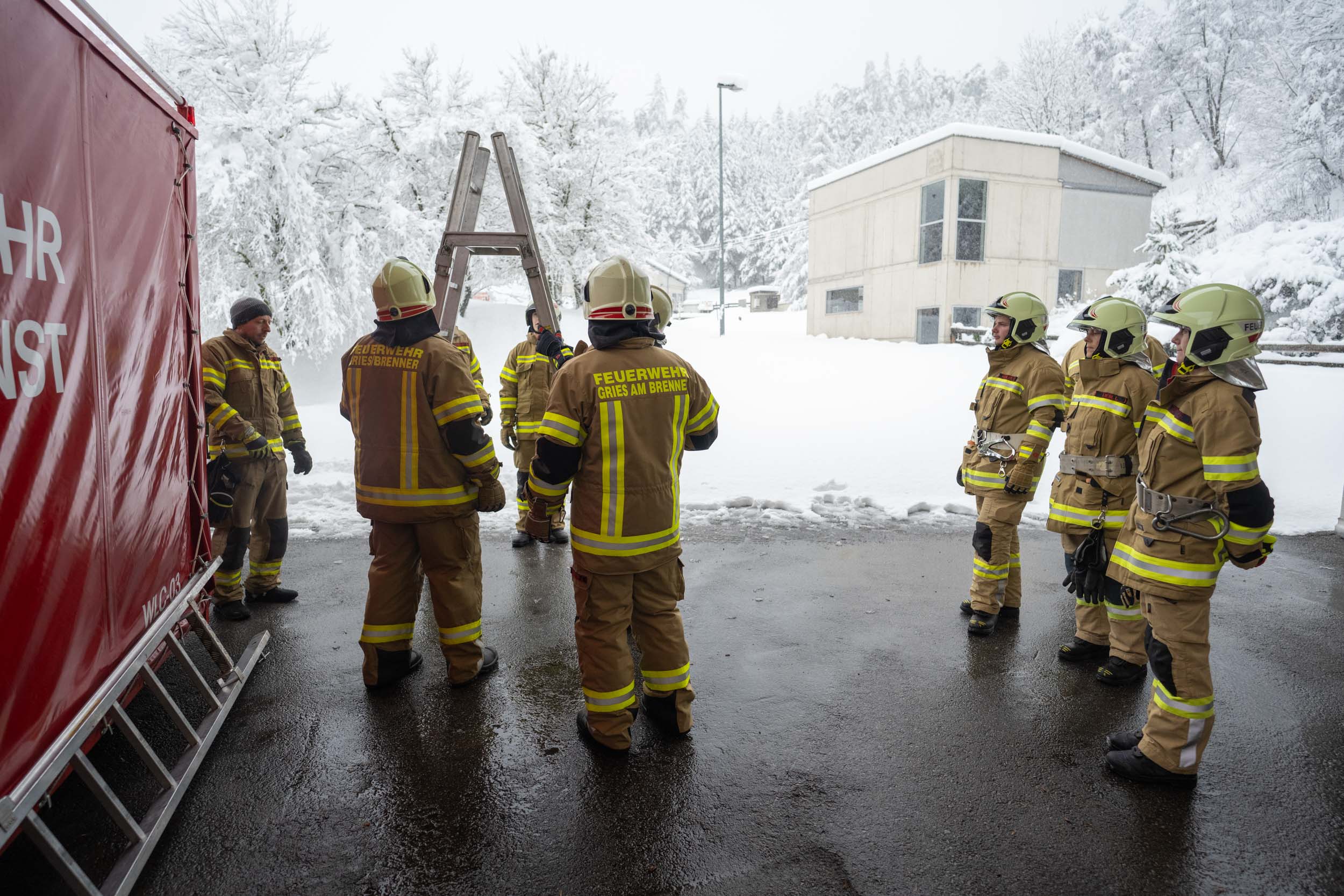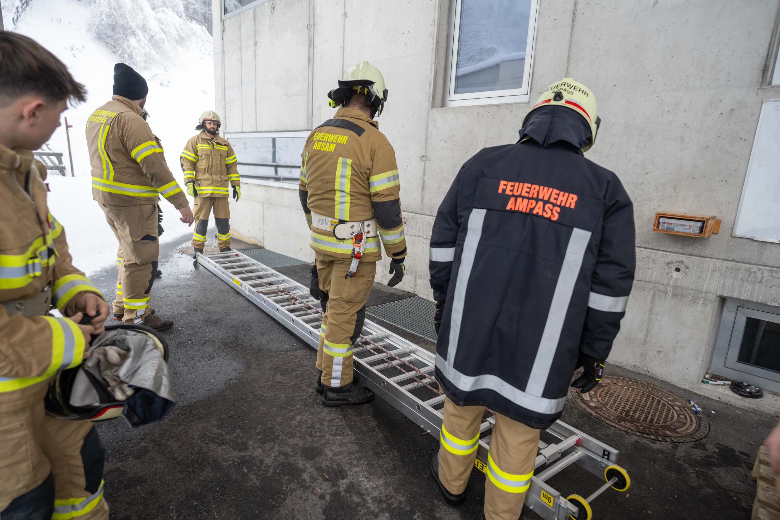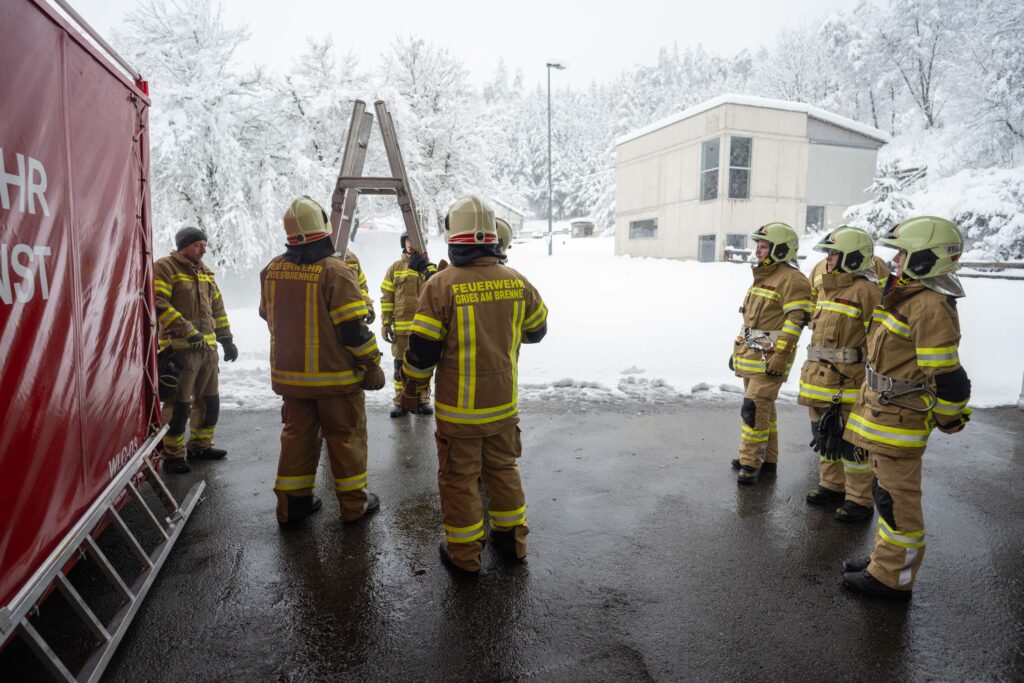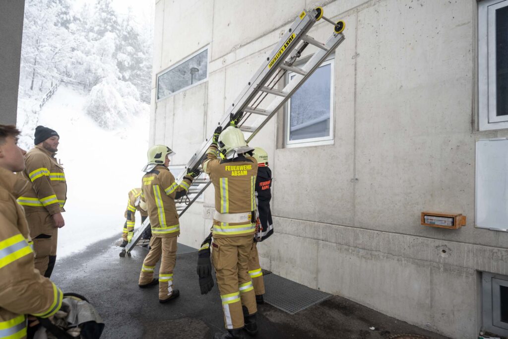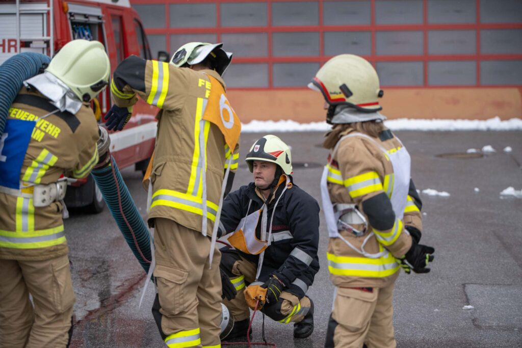 Für die Praxis musste aufgrund des vorherrschenden Wetters mit viel Neuschnee kurzfristig improvisiert werden. Um konstante Bedingungen für das Erlernen der notwendigen Fähigkeiten zu schaffen, übten die vier Ausbildungsgruppen verteilt auf mehrere Fahrzeughallen.