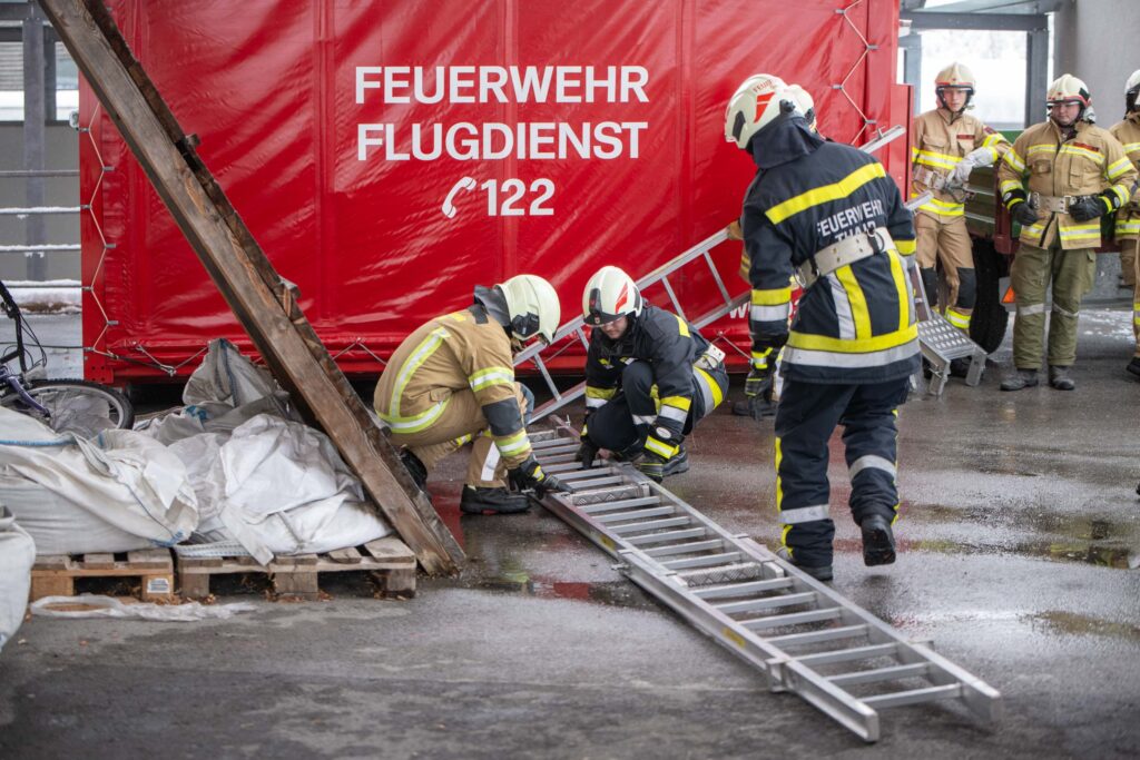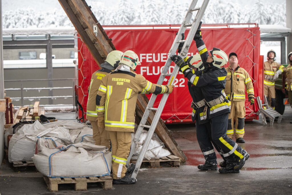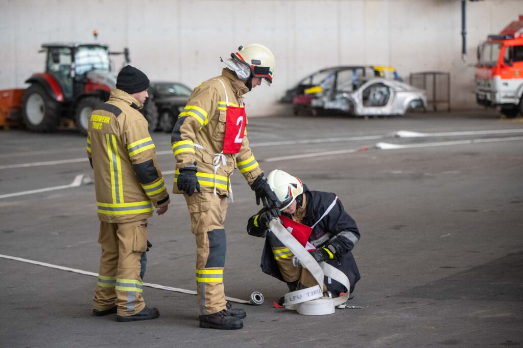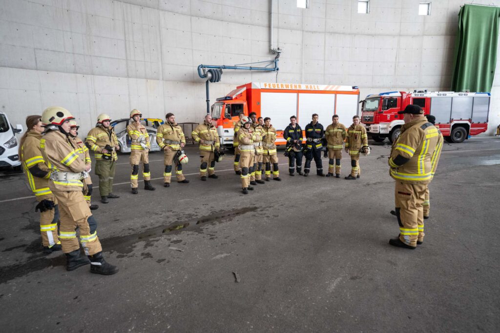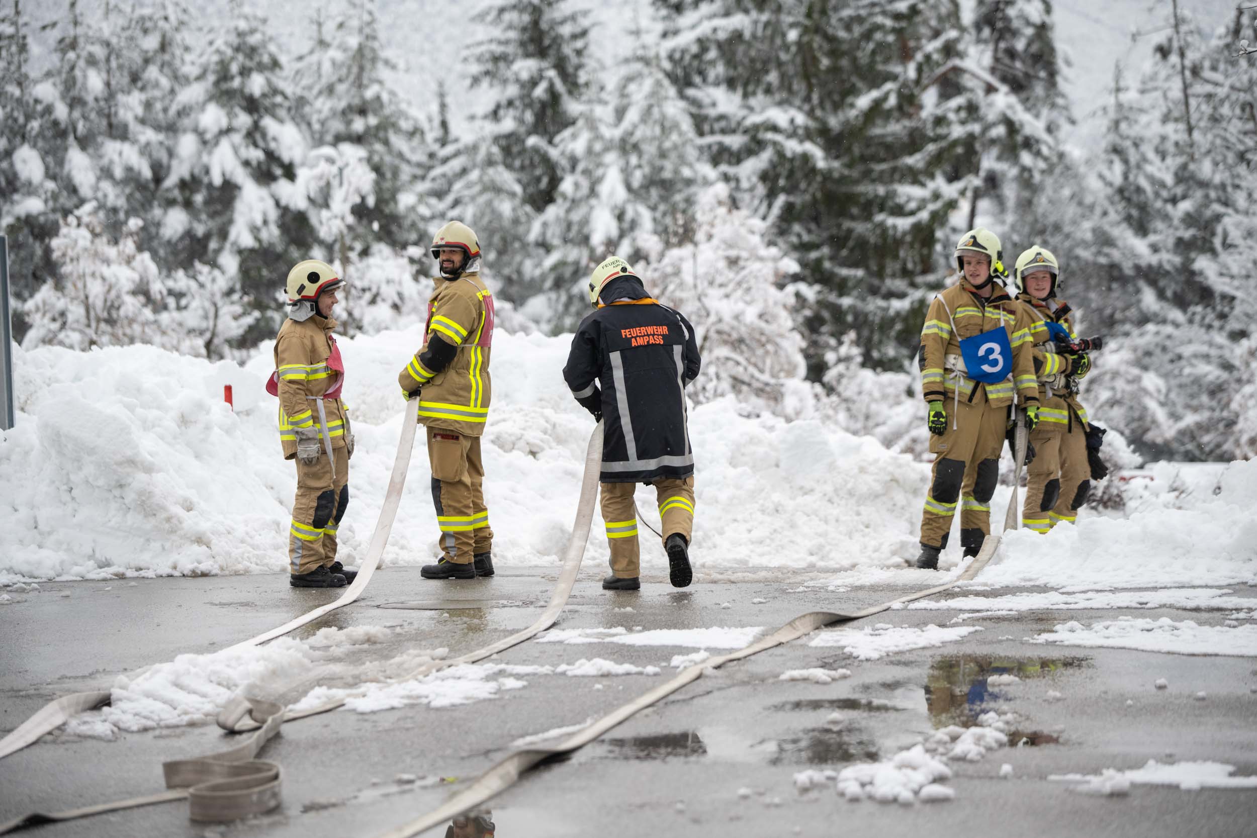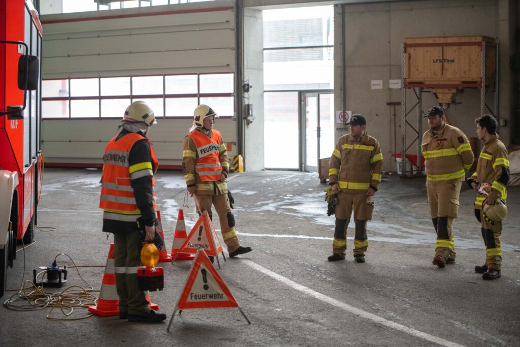 Für die Praxis musste aufgrund des vorherrschenden Wetters mit viel Neuschnee kurzfristig improvisiert werden. Um konstante Bedingungen für das Erlernen der notwendigen Fähigkeiten zu schaffen, übten die vier Ausbildungsgruppen verteilt auf mehrere Fahrzeughallen.