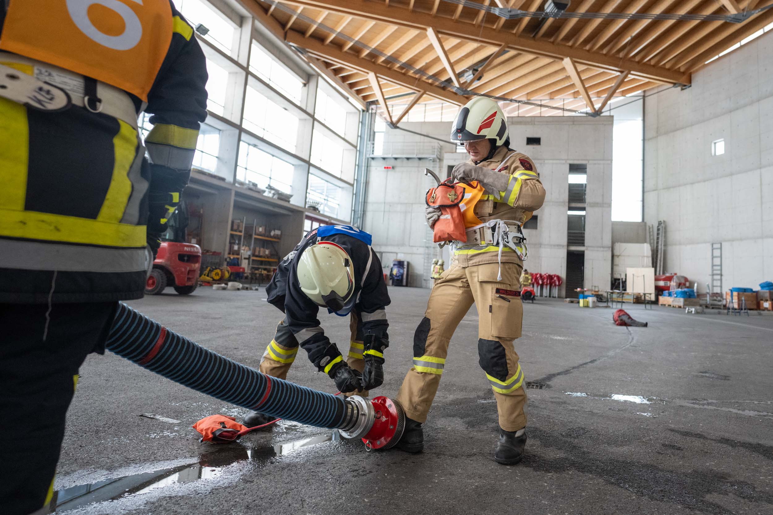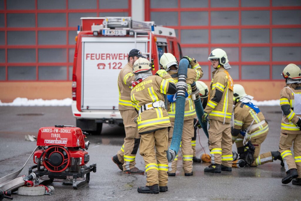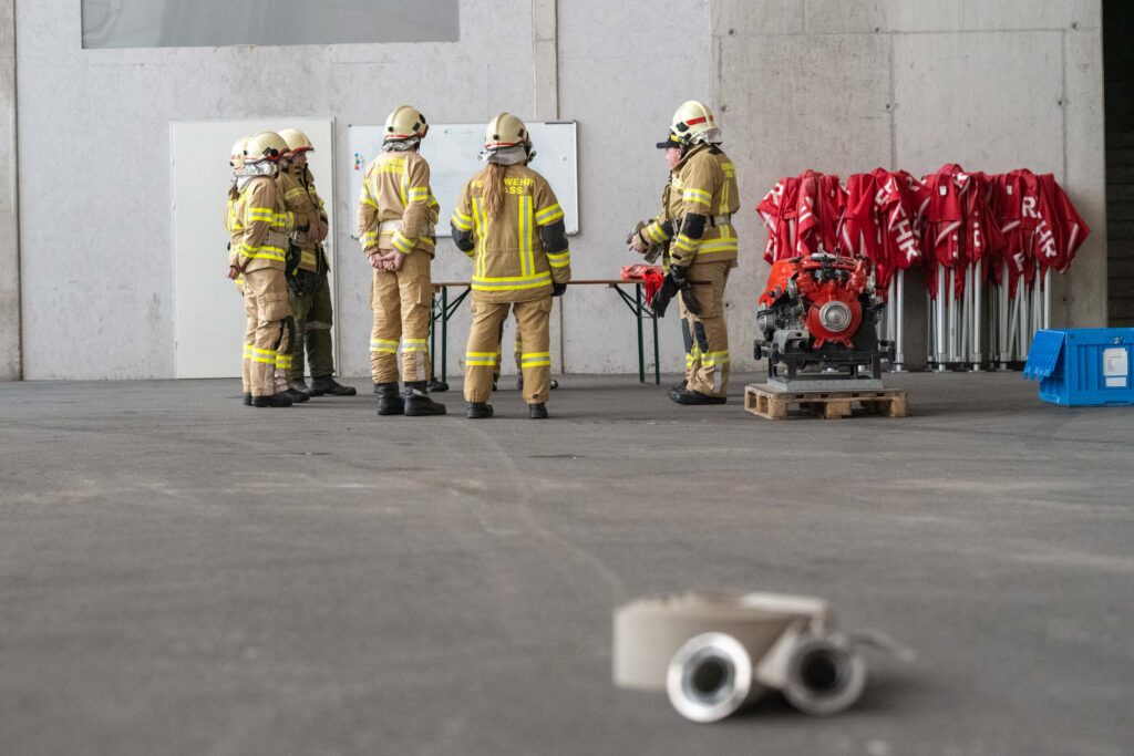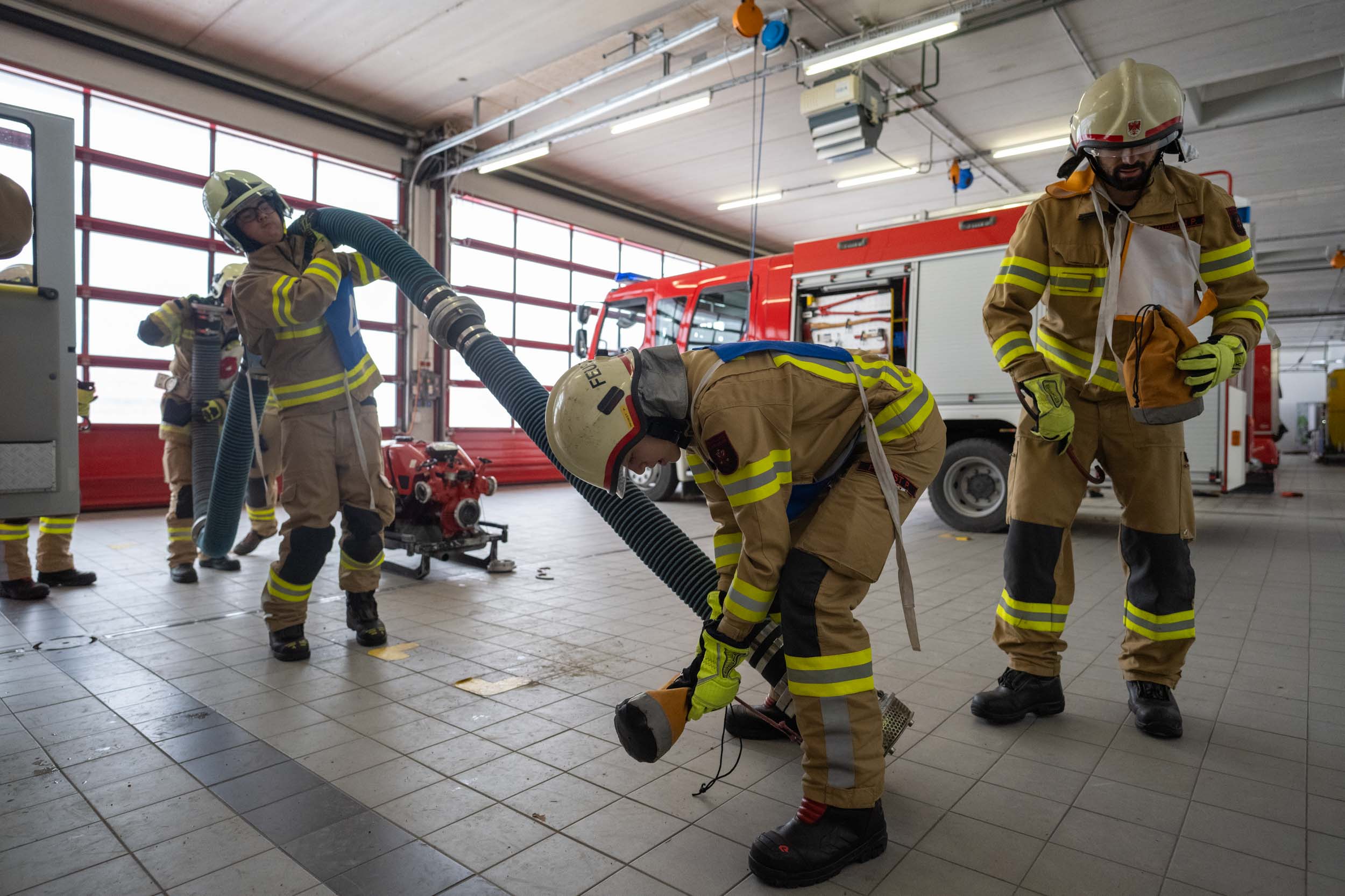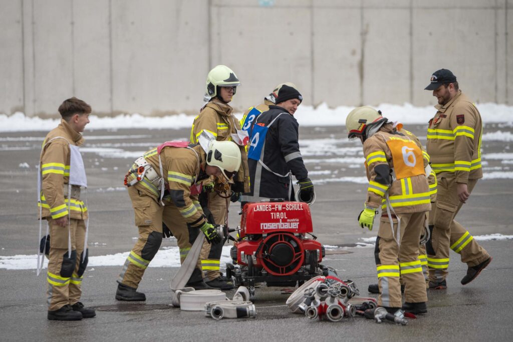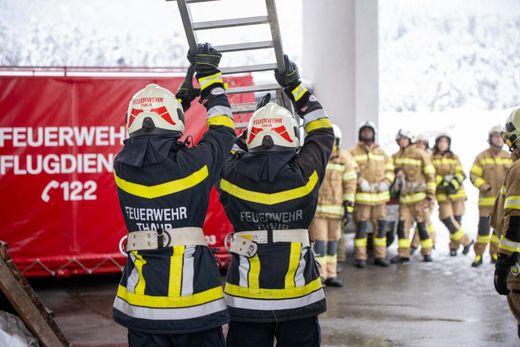 Für die Praxis musste aufgrund des vorherrschenden Wetters mit viel Neuschnee kurzfristig improvisiert werden. Um konstante Bedingungen für das Erlernen der notwendigen Fähigkeiten zu schaffen, übten die vier Ausbildungsgruppen verteilt auf mehrere Fahrzeughallen.
