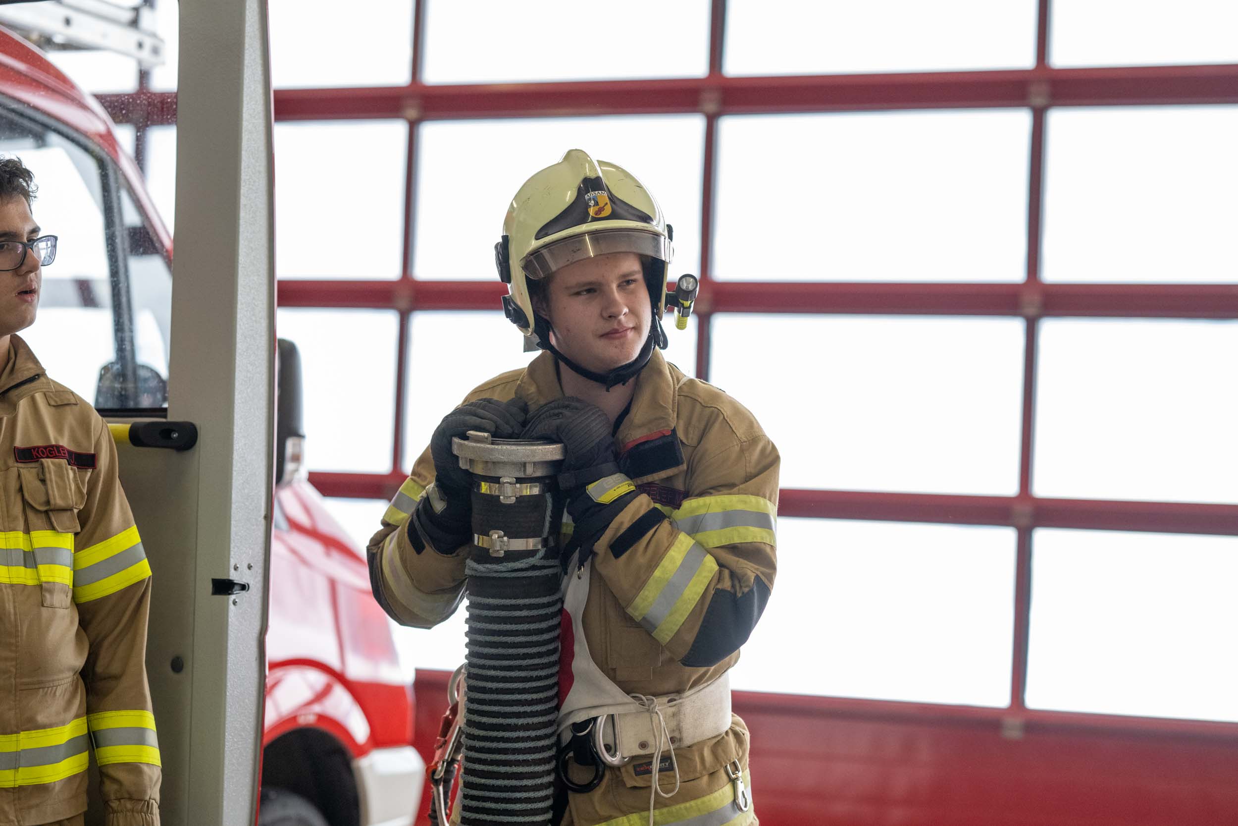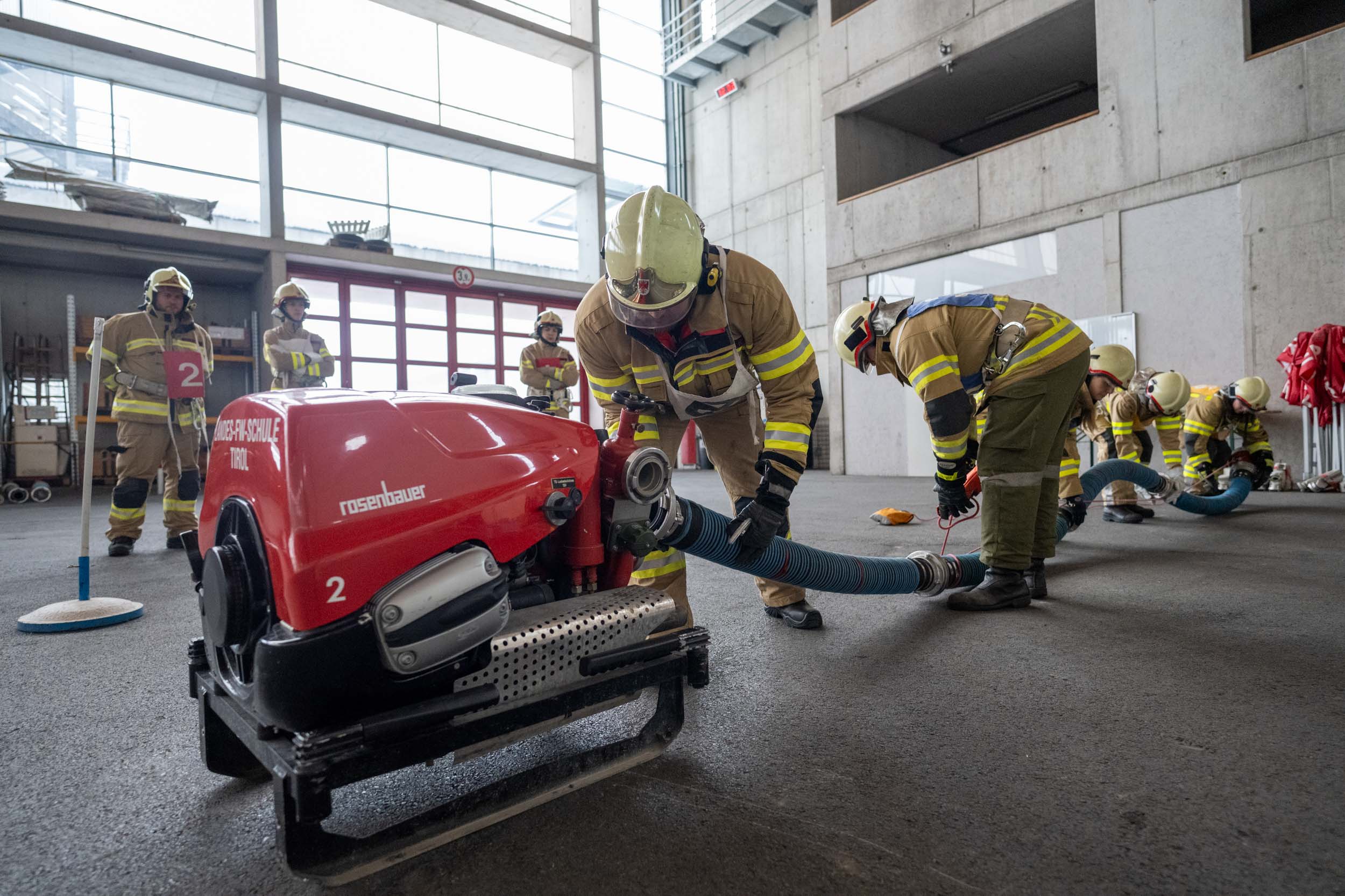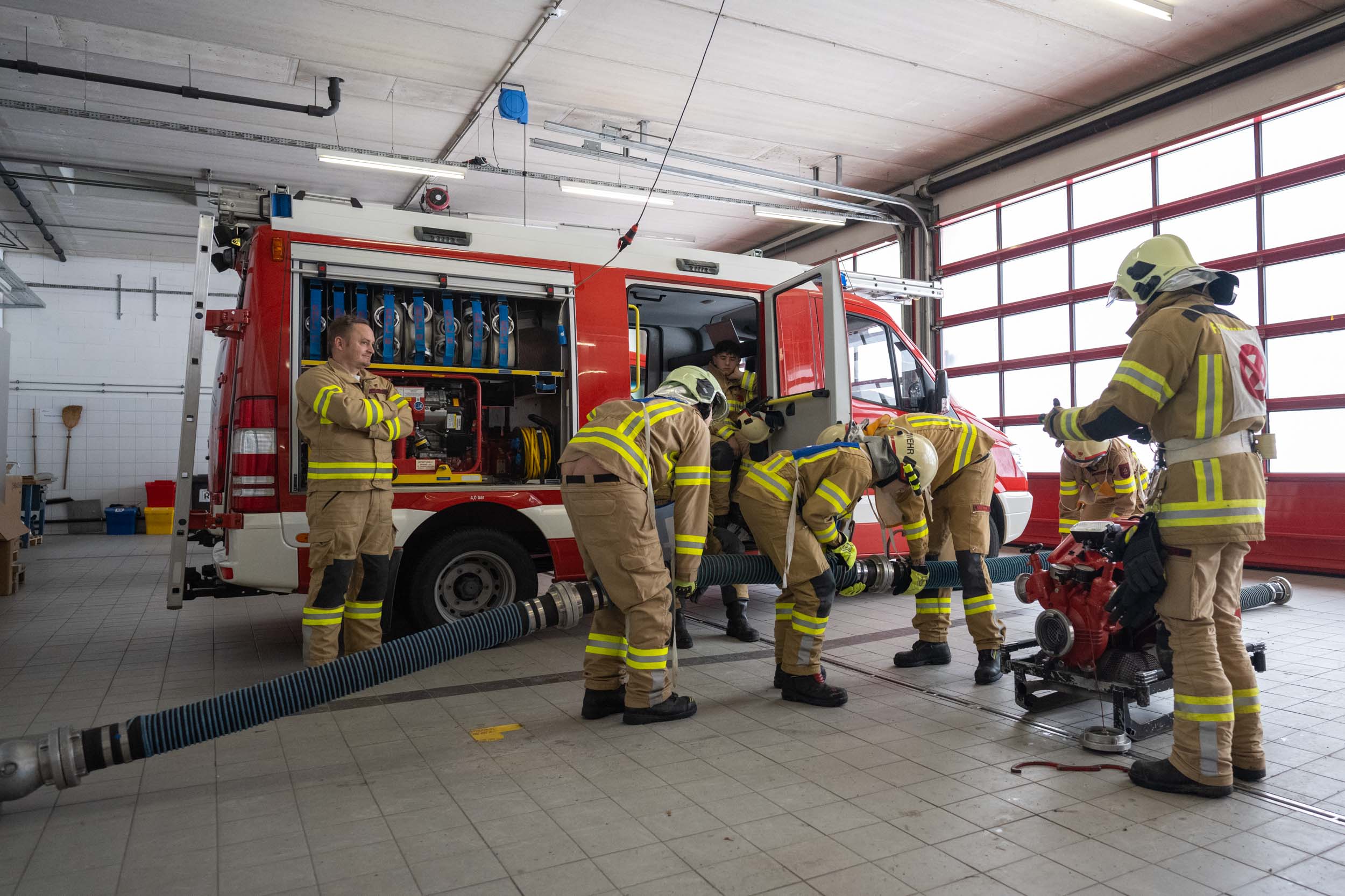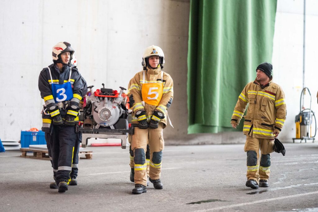 Für die Praxis musste aufgrund des vorherrschenden Wetters mit viel Neuschnee kurzfristig improvisiert werden. Um konstante Bedingungen für das Erlernen der notwendigen Fähigkeiten zu schaffen, übten die vier Ausbildungsgruppen verteilt auf mehrere Fahrzeughallen.