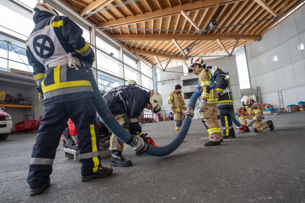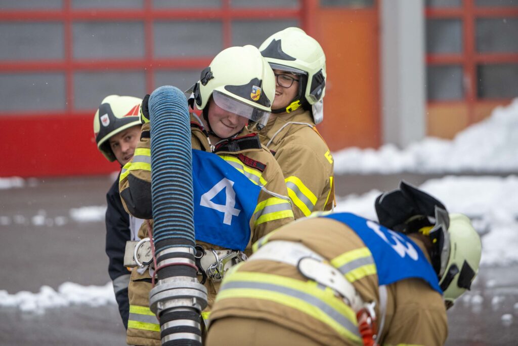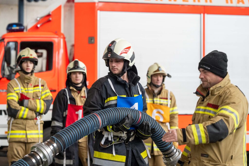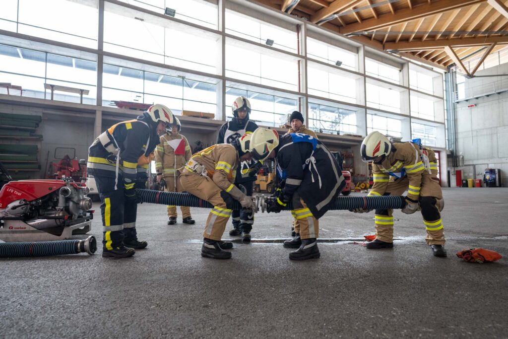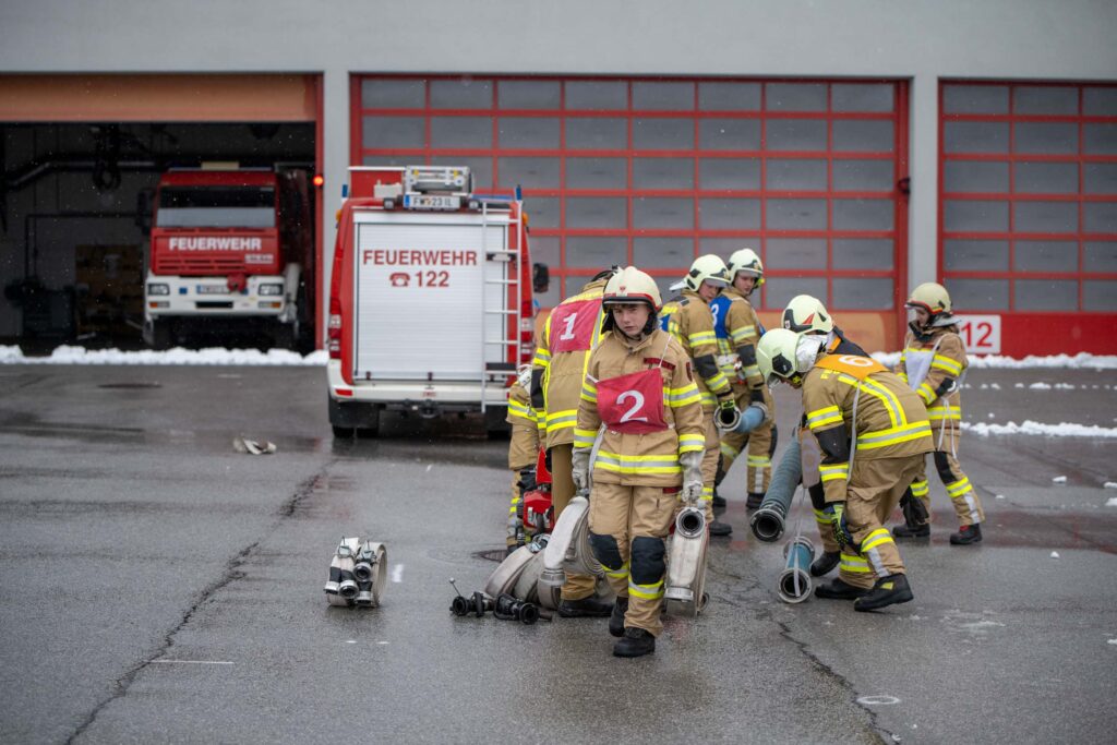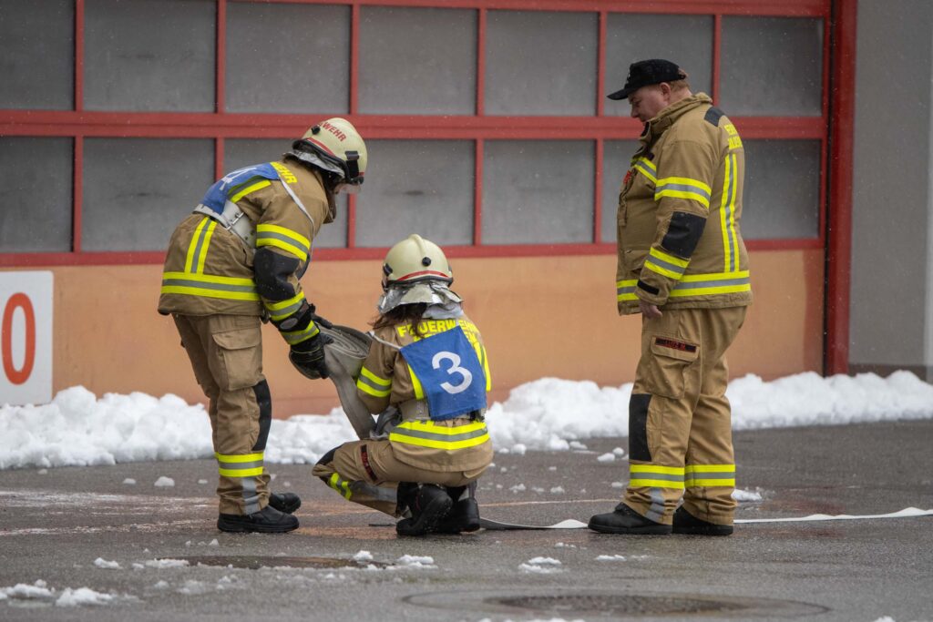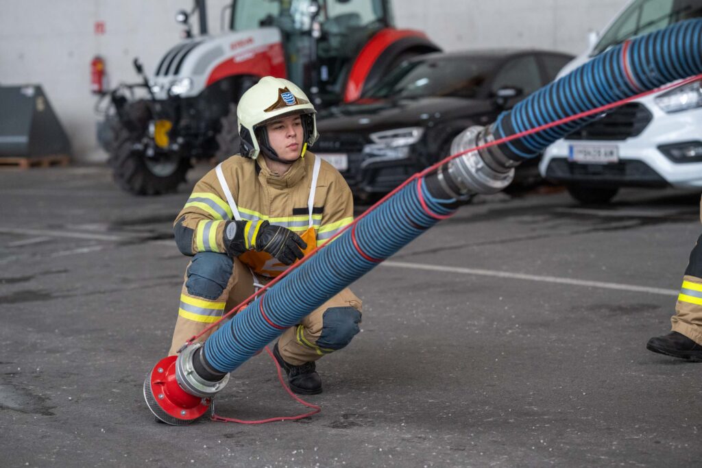 Saugleitung kuppeln, Löschleitung verlegen, Absichern der Einsatzstelle, das Arbeiten mit Steck- und Schiebeleitern und das richtige Exerzieren, all diese Punkte standen für die 33 angehenden Feuerwehrkameraden am Stundenplan.