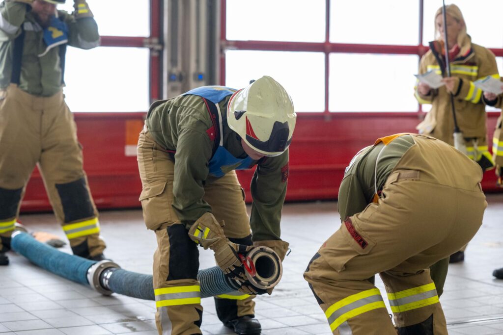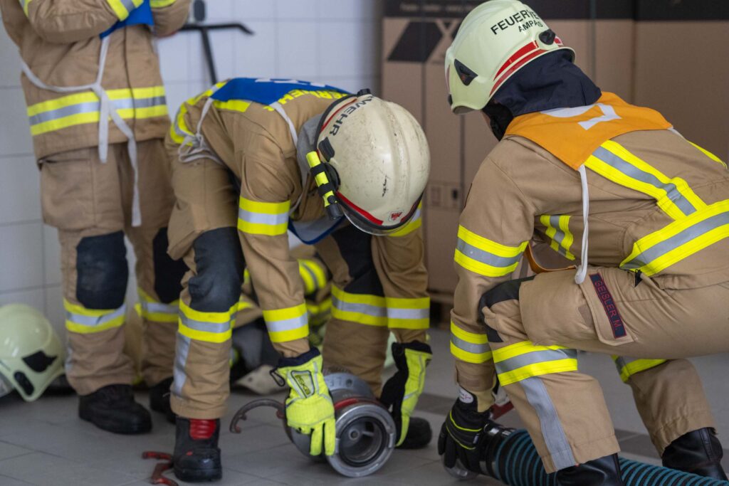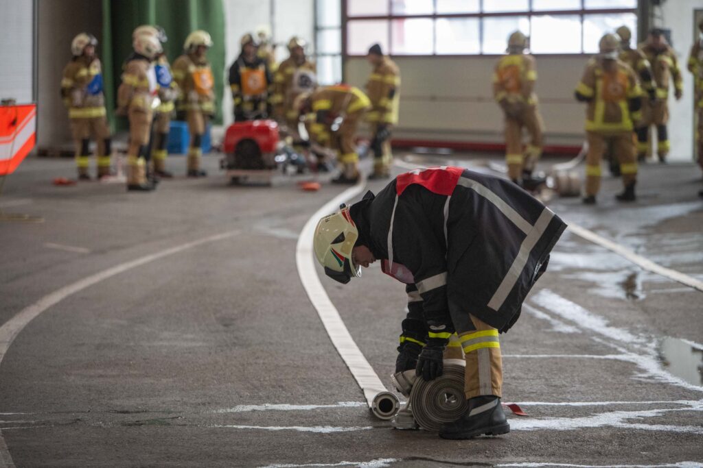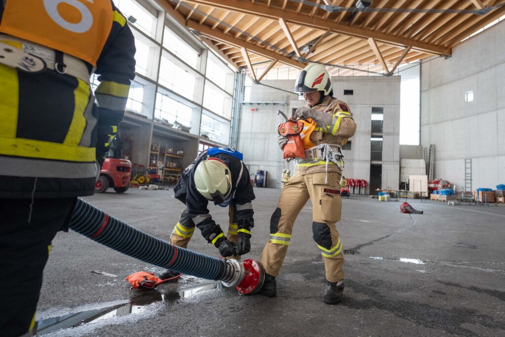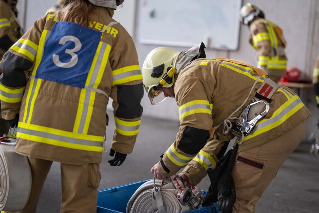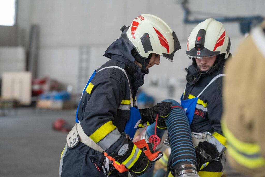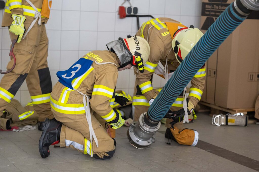 Saugleitung kuppeln, Löschleitung verlegen, Absichern der Einsatzstelle, das Arbeiten mit Steck- und Schiebeleitern und das richtige Exerzieren, all diese Punkte standen für die 33 angehenden Feuerwehrkameraden am Stundenplan.