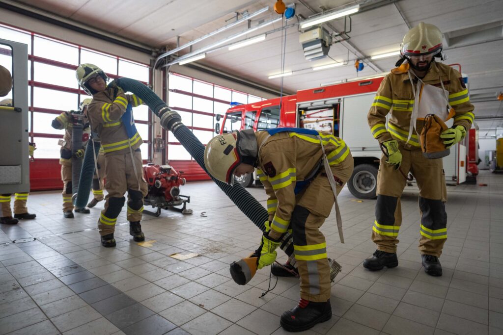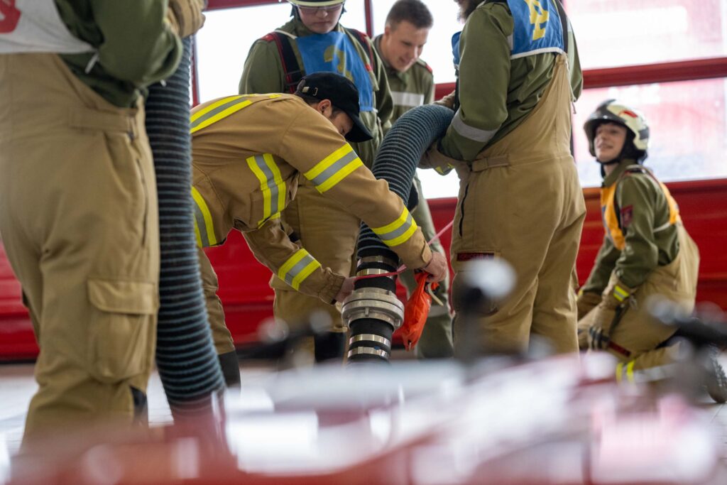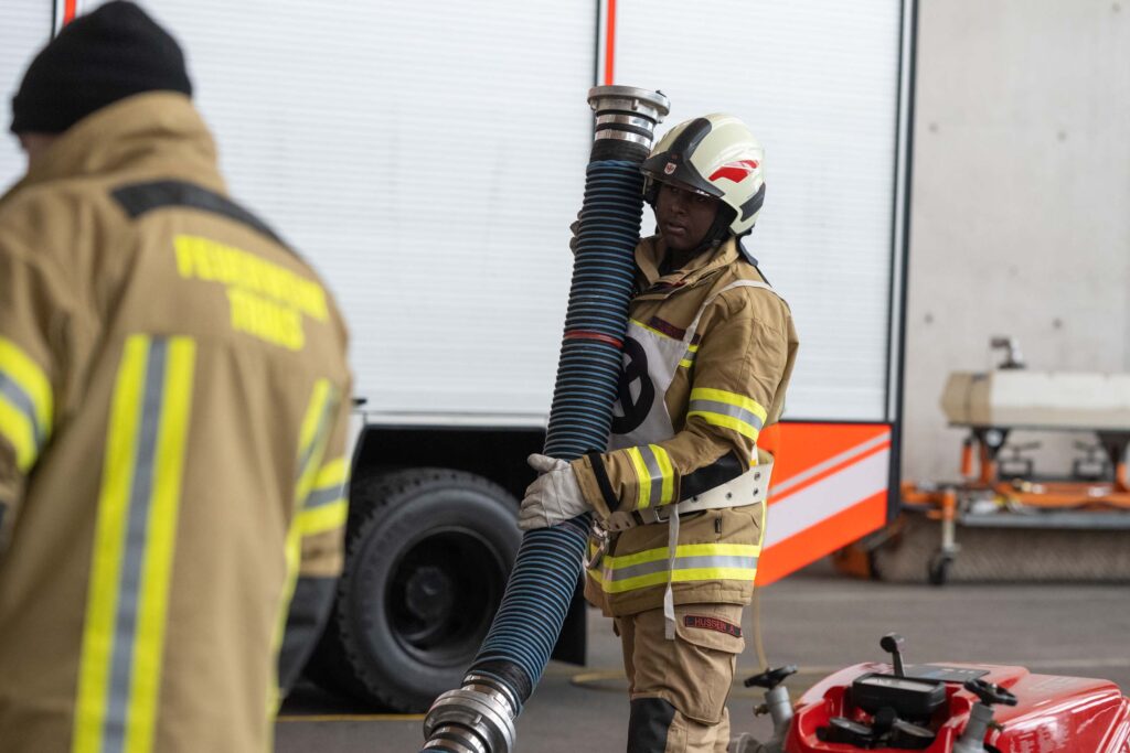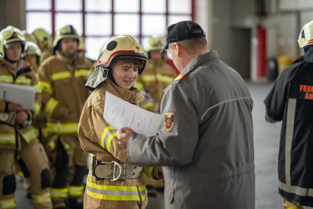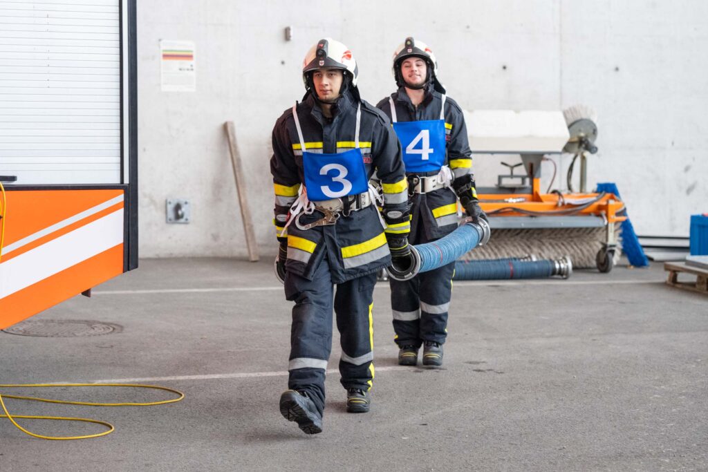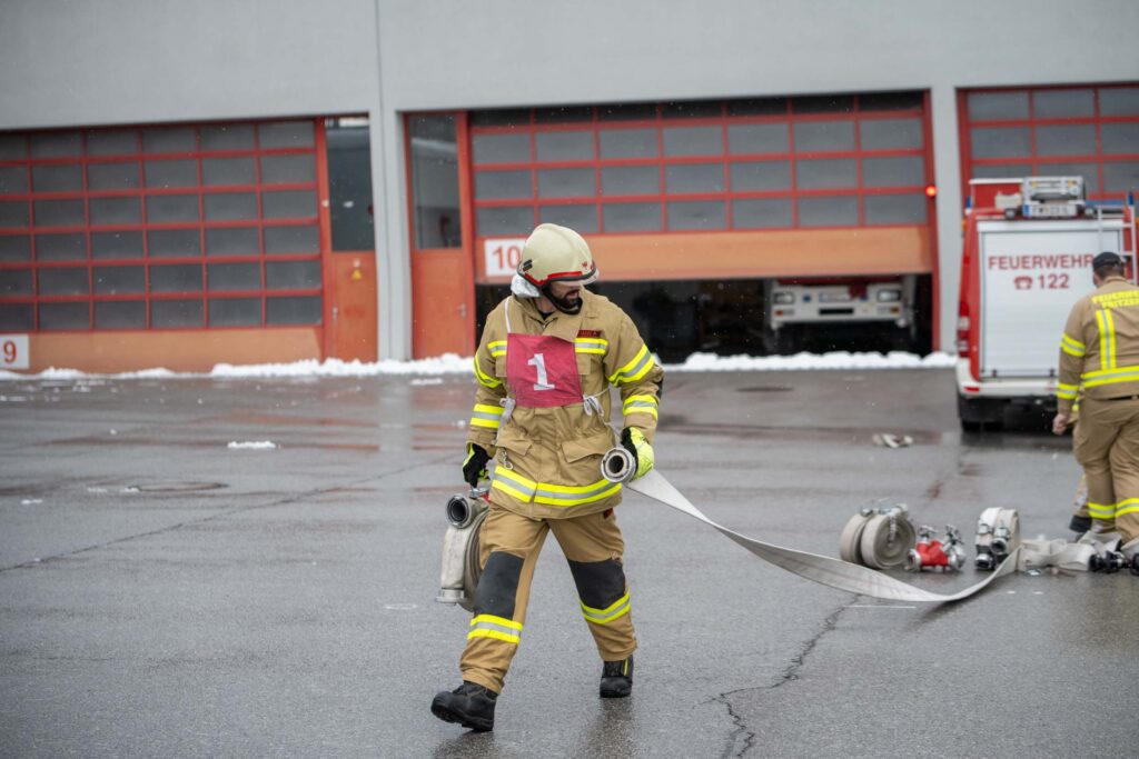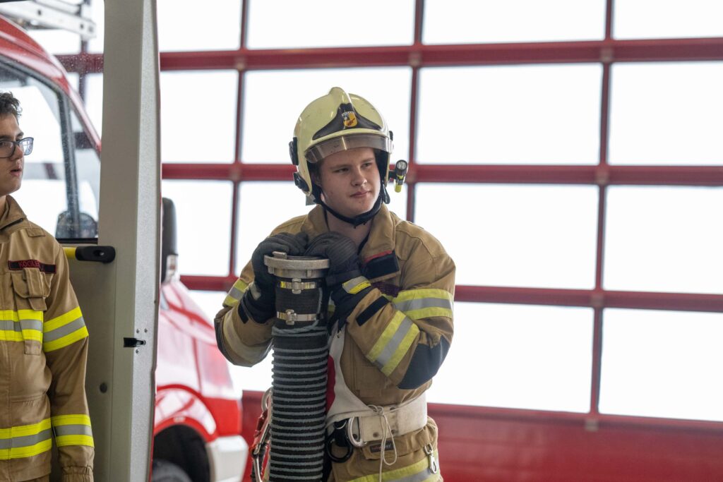 Saugleitung kuppeln, Löschleitung verlegen, Absichern der Einsatzstelle, das Arbeiten mit Steck- und Schiebeleitern und das richtige Exerzieren, all diese Punkte standen für die 33 angehenden Feuerwehrkameraden am Stundenplan.