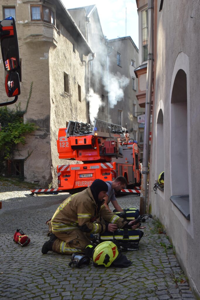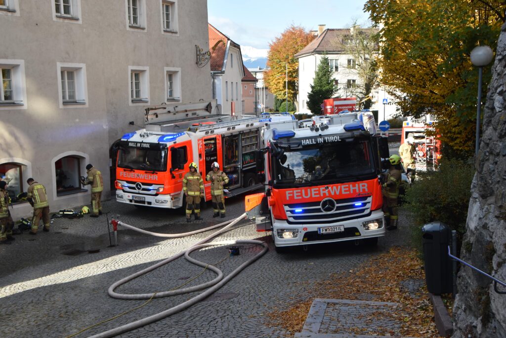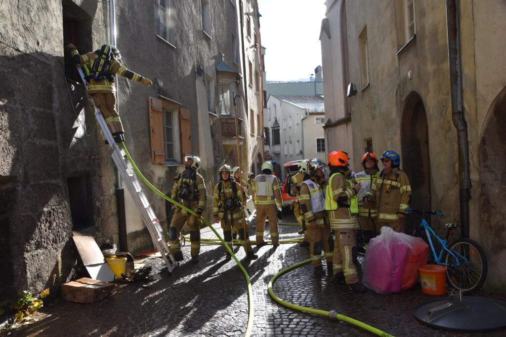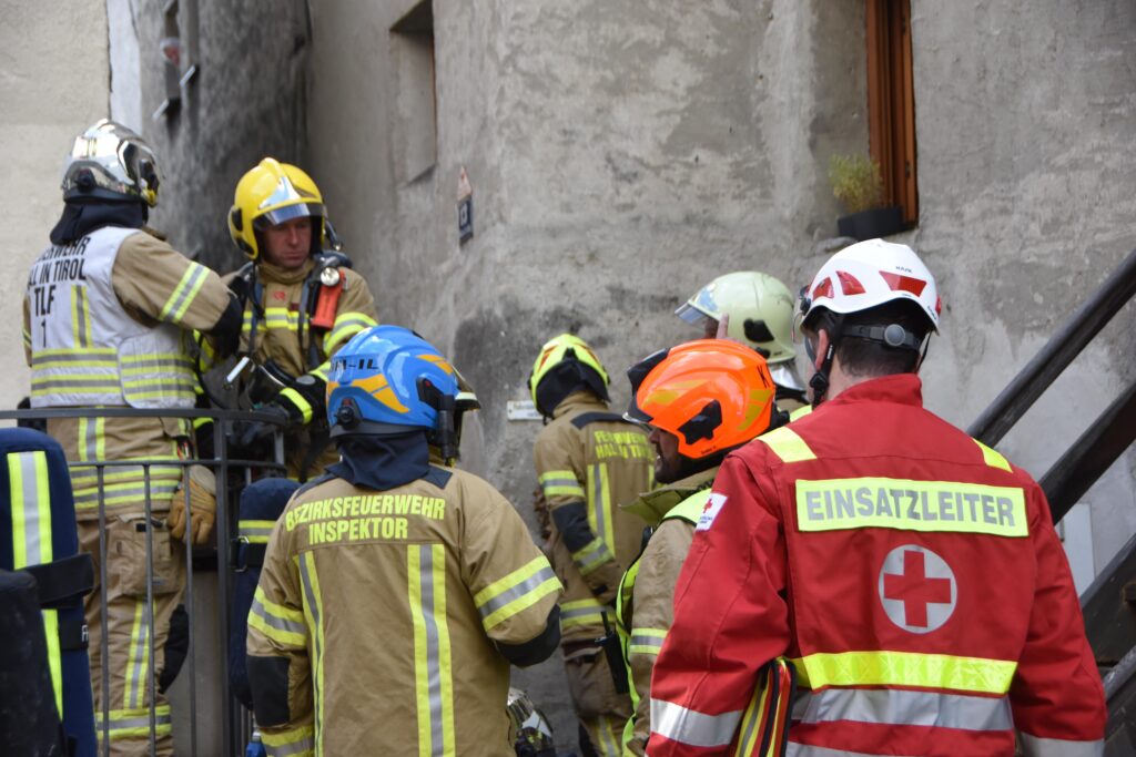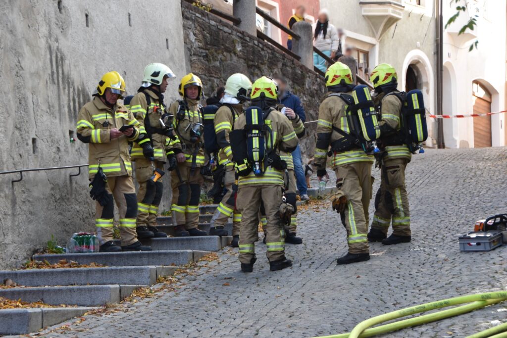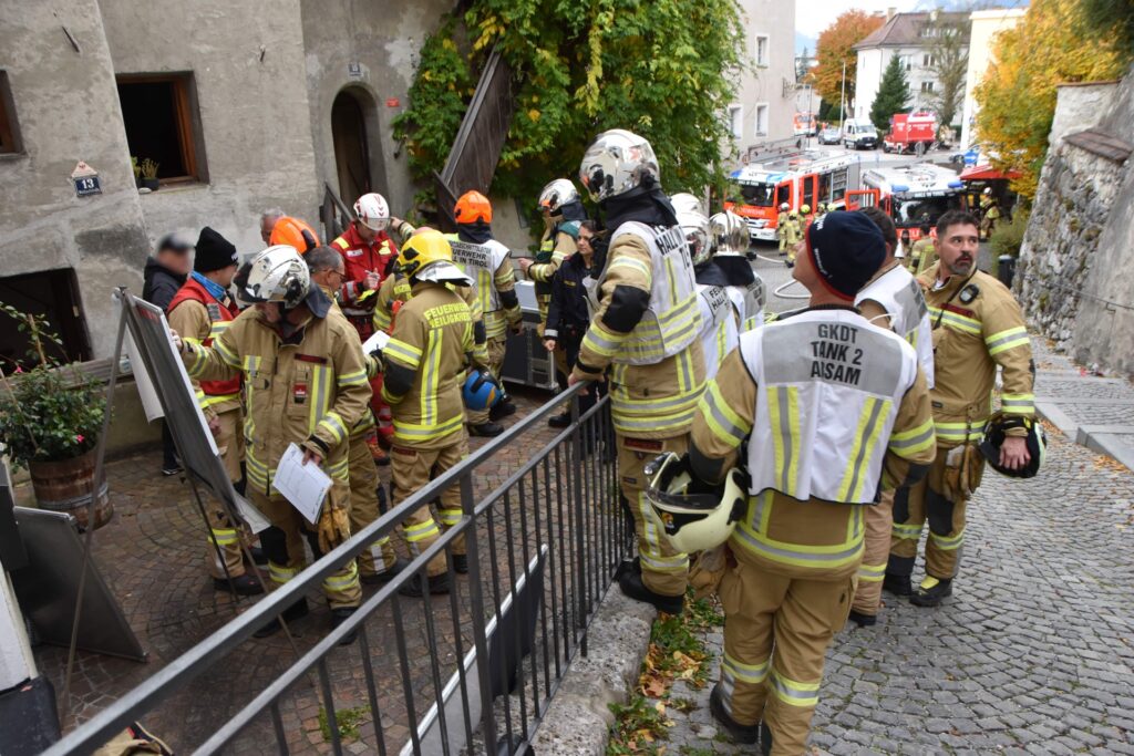 Ein Brand in einem Haller Altstadthaus lässt selbst bei den erfahrensten Einsatzkräften den Puls höher schlagen. So auch am morgen des 25.10.2025 bei einem Wohnungsbrand in der Waldaufstraße. Vermutlich war bereits am Vortag ein Schwelbrand im Bereich einer Tramdecke ausgebrochen. Am morgen brach das Feuer durch und die Einsatzkräfte wurden alarmiert. Die ersten Atemschutzkräfte der Freiwilligen Feuerwehr Hall waren mit einer enormen Rauchentwicklung im Stiegenhaus und den betroffenen Wohnungen, extremer Hitze und einem Brand im Erdgeschoß und 1. Obergeschoß konfrontiert.