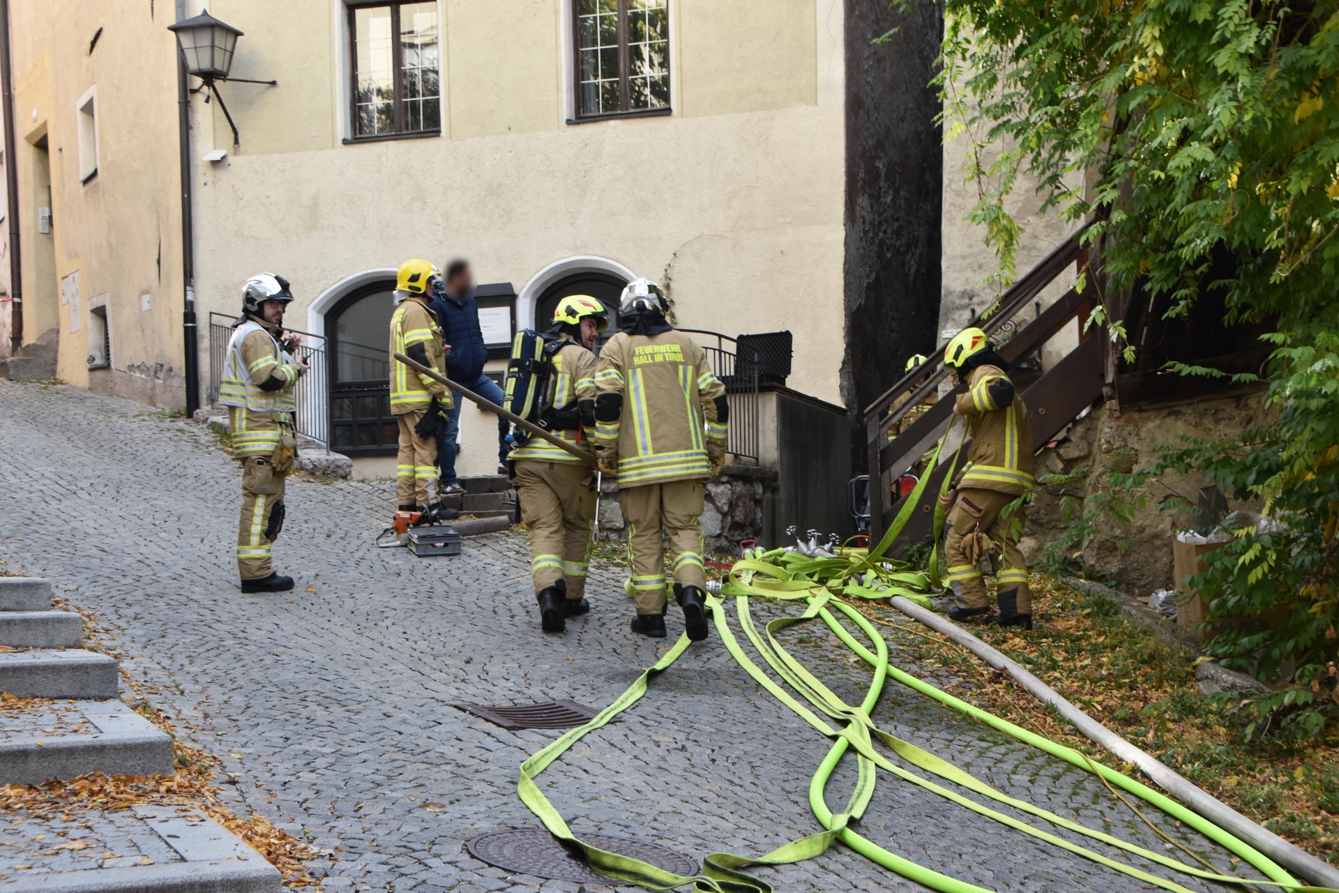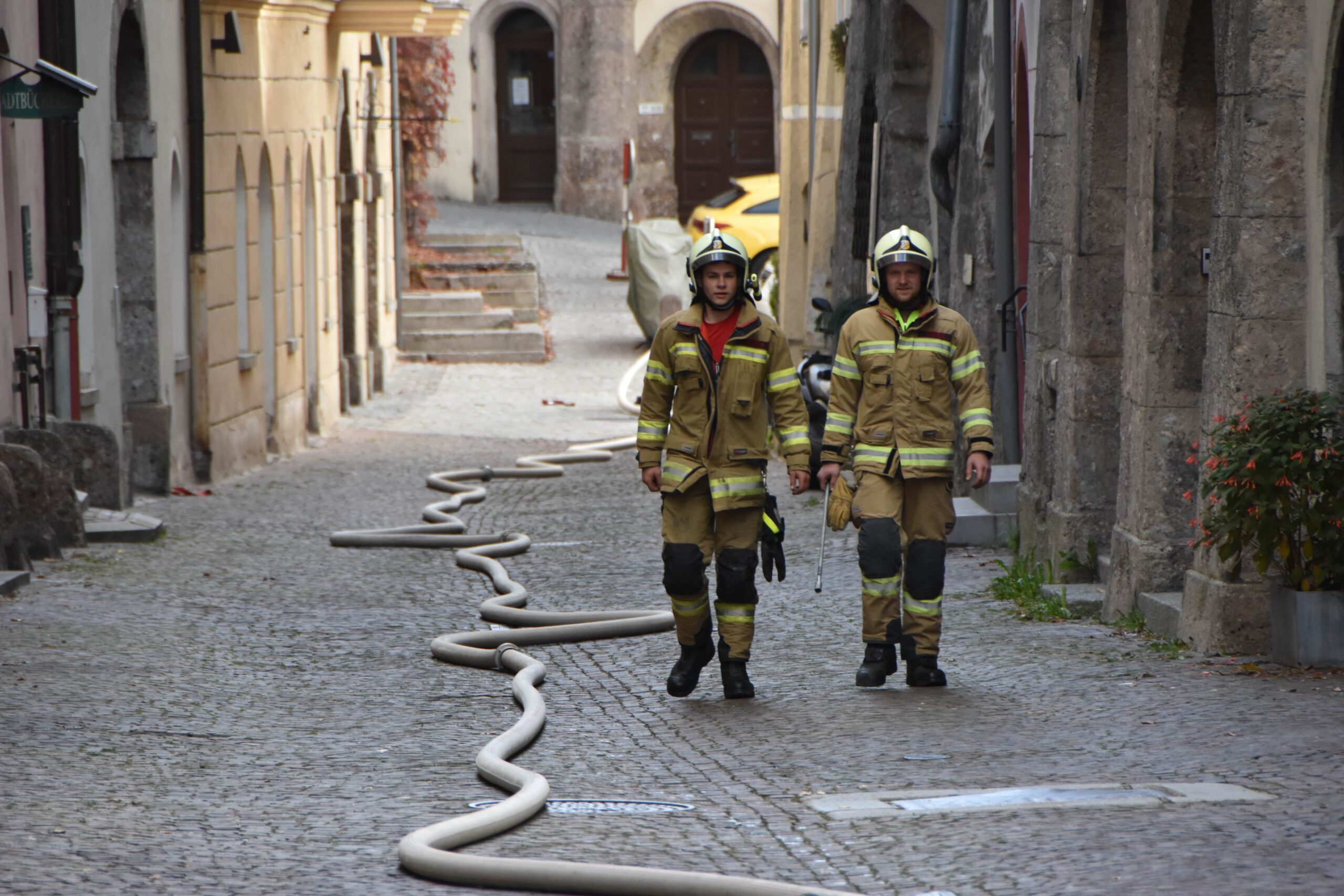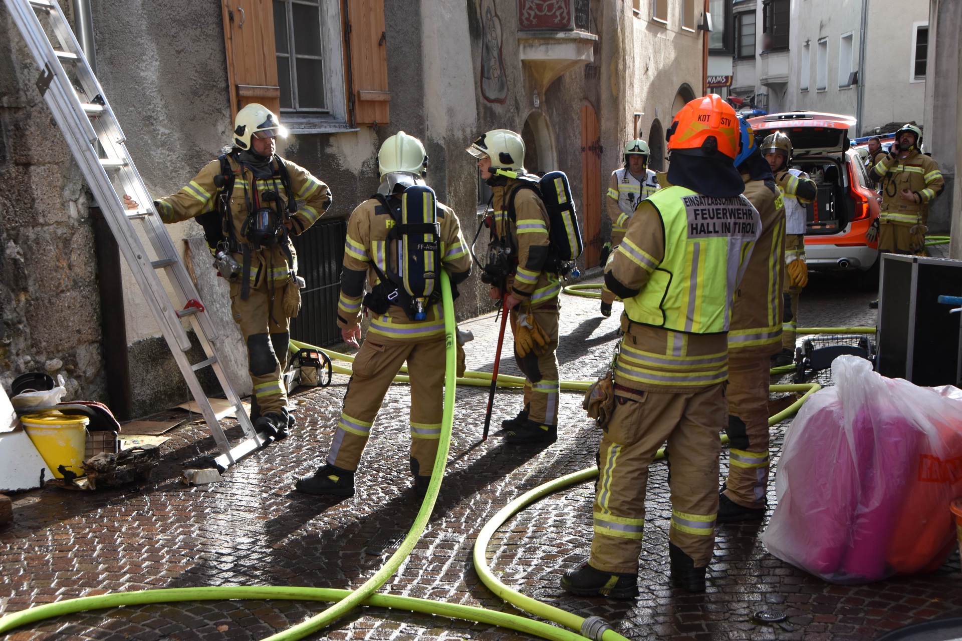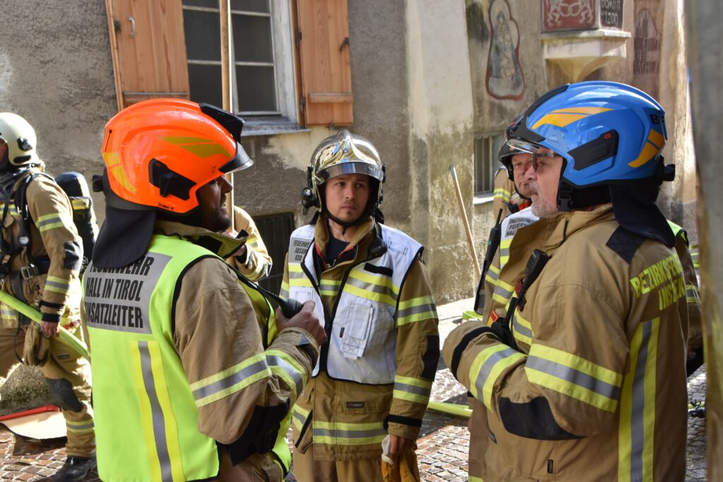 Ein Brand in einem Haller Altstadthaus lässt selbst bei den erfahrensten Einsatzkräften den Puls höher schlagen. So auch am morgen des 25.10.2025 bei einem Wohnungsbrand in der Waldaufstraße. Vermutlich war bereits am Vortag ein Schwelbrand im Bereich einer Tramdecke ausgebrochen. Am morgen brach das Feuer durch und die Einsatzkräfte wurden alarmiert. Die ersten Atemschutzkräfte der Freiwilligen Feuerwehr Hall waren mit einer enormen Rauchentwicklung im Stiegenhaus und den betroffenen Wohnungen, extremer Hitze und einem Brand im Erdgeschoß und 1. Obergeschoß konfrontiert.
