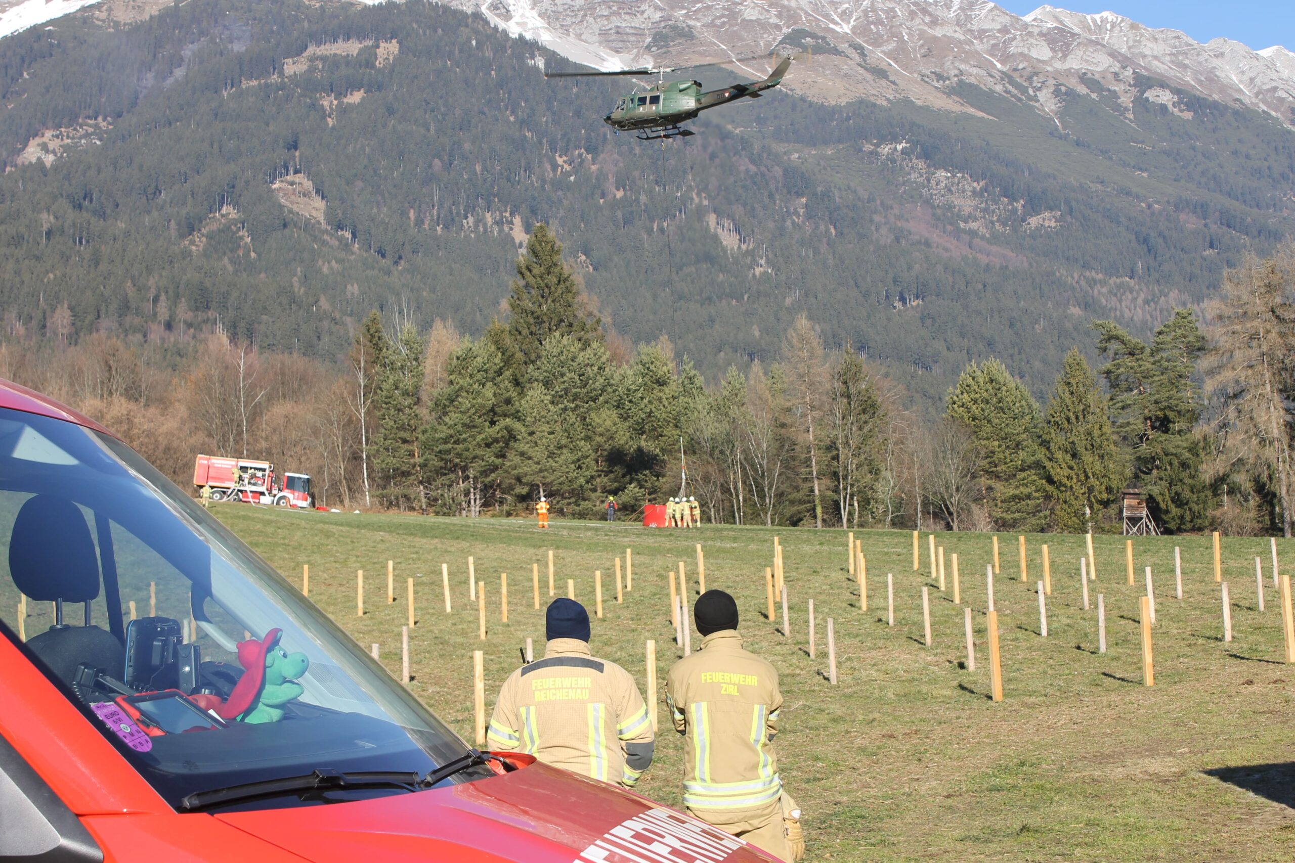 Bereits am ersten Einsatztag wurden mehrere Freiwillige Feuerwehren aus den Bezirken Innsbruck und Innsbruck-Land sowie der Feuerwehr-Flugdienst Innsbruck-Land und der Feuerwehr-Flugdienst Imst zur Unterstützung angefordert. Ziel war es, rasch ausreichend Personal und Material zur Brandbekämpfung in das schwer zugängliche Einsatzgebiet zu bringen.